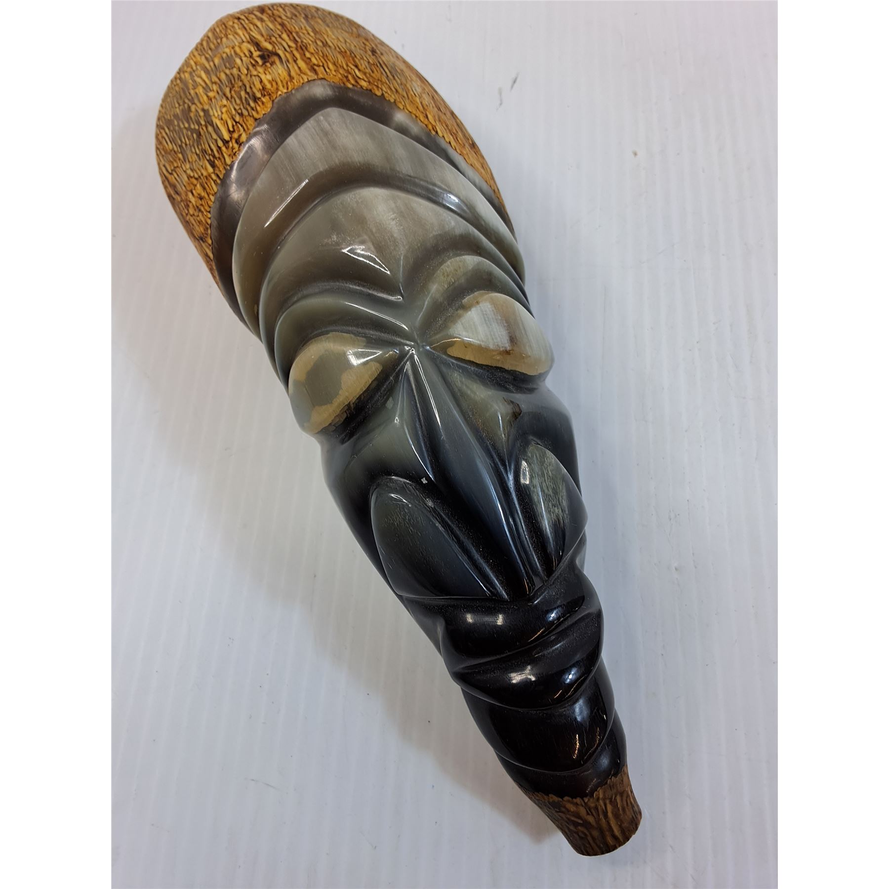 Carved Stone Horn Shaped Indonesian Theme - 9" Long