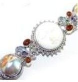 Silver & Carved Stone, Mixed Stones & Shell Bracelet