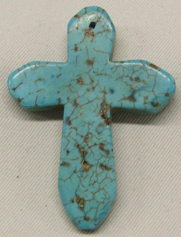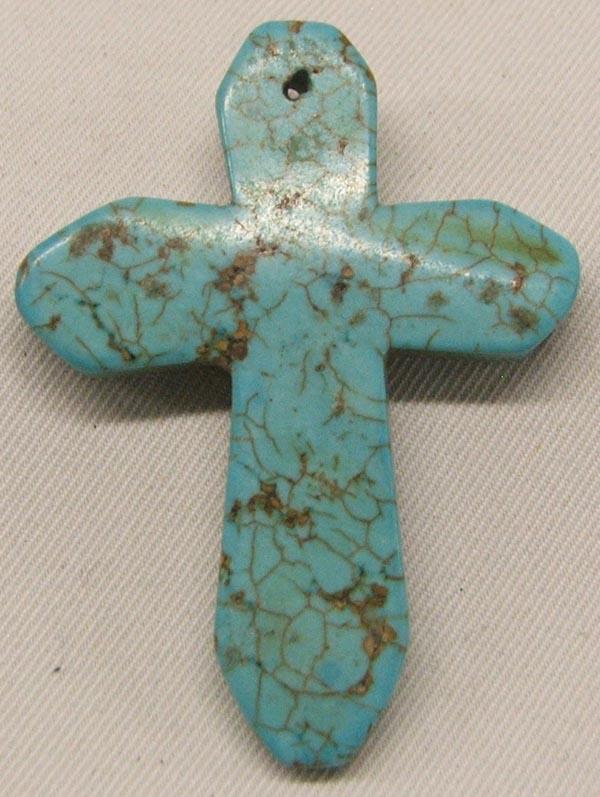 Carved Turquoise Cross Pendant, measures approx. 2'' x 1.5''. SHI $15.