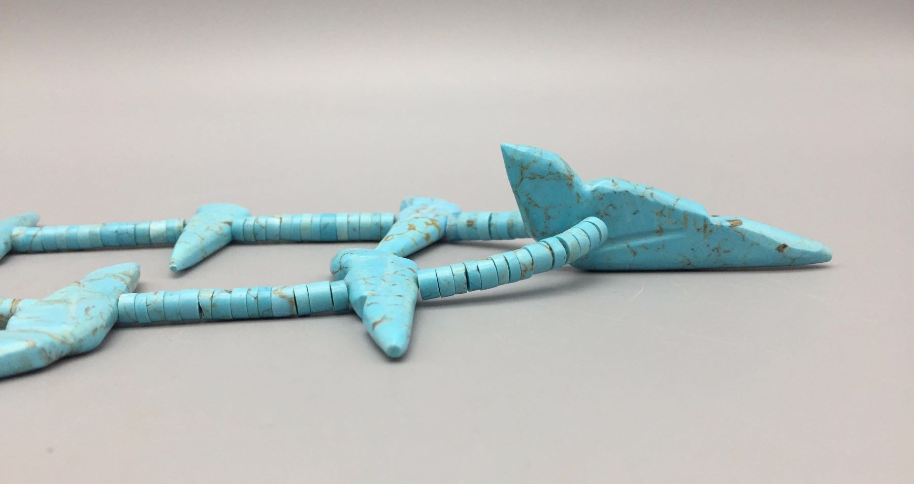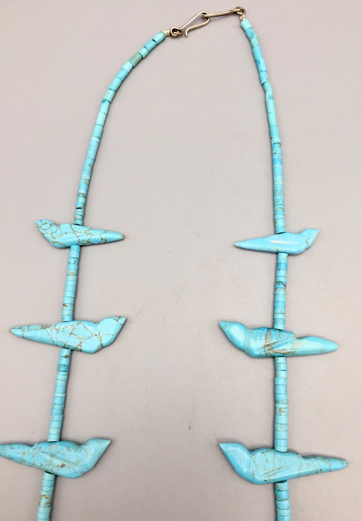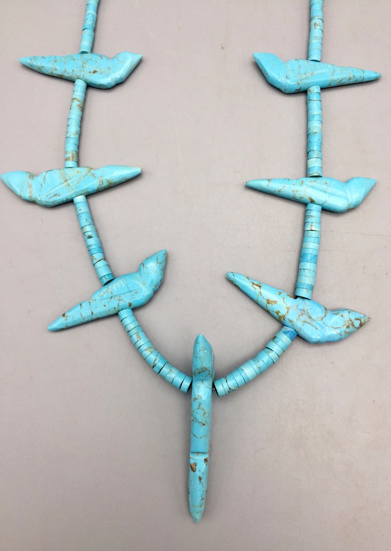 Description: Carved turquoise necklace. Maker: Unknown, Pueblo in style. Approx. Age: Vintage. Size: 26” around the neck. Condition: Good for its age, normal wear expected. Please look closely at the pictures - they are an important part of our description. Shipping: There will be a $5 handling / packaging fee for shipping this lot. The actual cost of postage will be added on top of that.