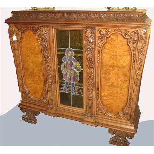 <tr><td>Title:Carved Walnut Cabinet with Stained Glass</td></tr>