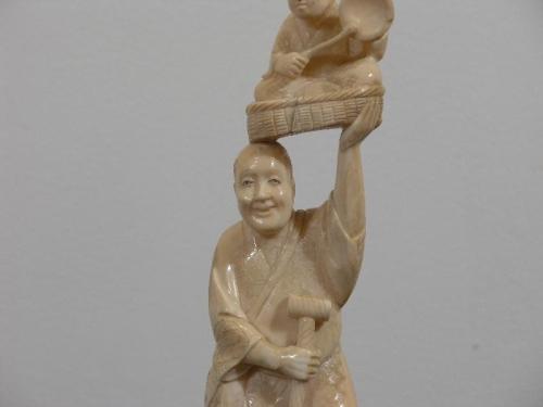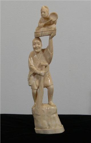 (Japan 20th Century) very skilled carving of father and son, signature verso, 11" by 4".