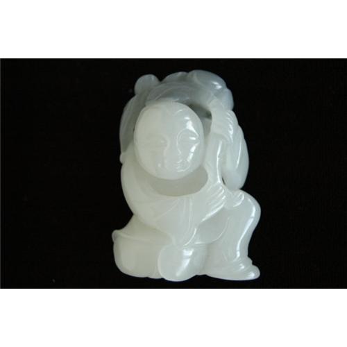 Carved White Jade Boy Holding The Peach. 19/20th Century. Good condition