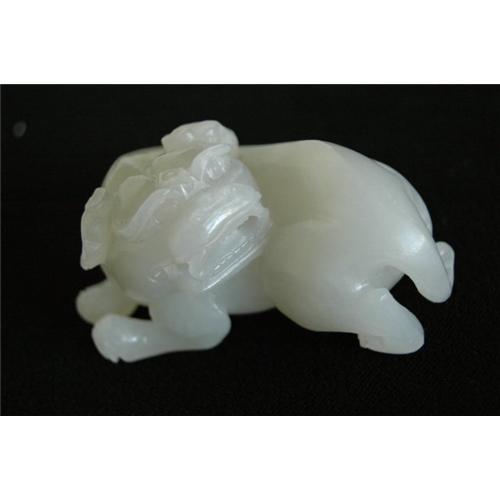 Carved White Jade Foo Dog. 19/20th Century. Good condition