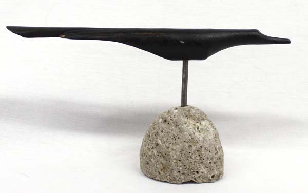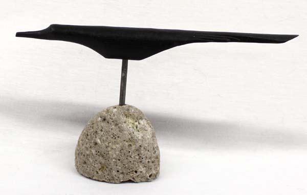 Carved Wood Blackbird on Stone Base, measures 5.5'' x 9'' x 1''