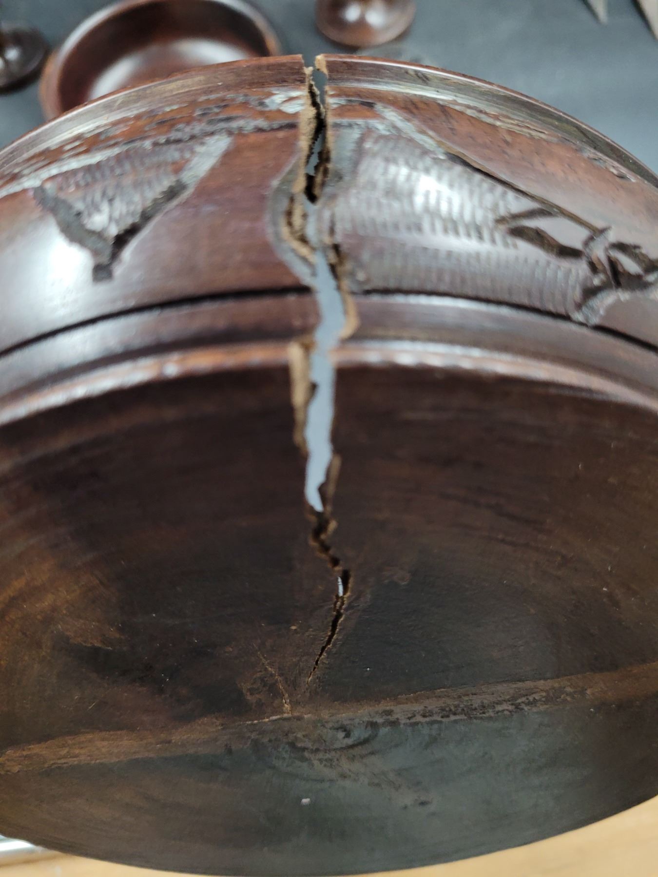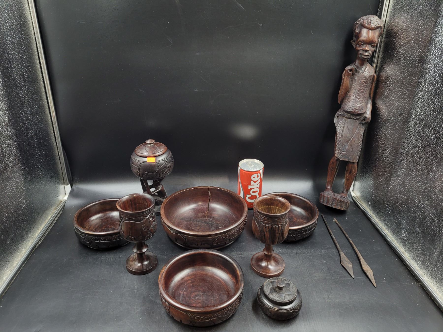 Carved Wood Bowls, Goblets, and Statue