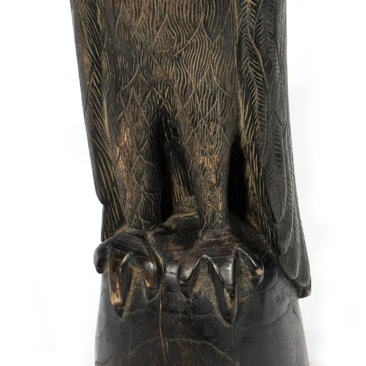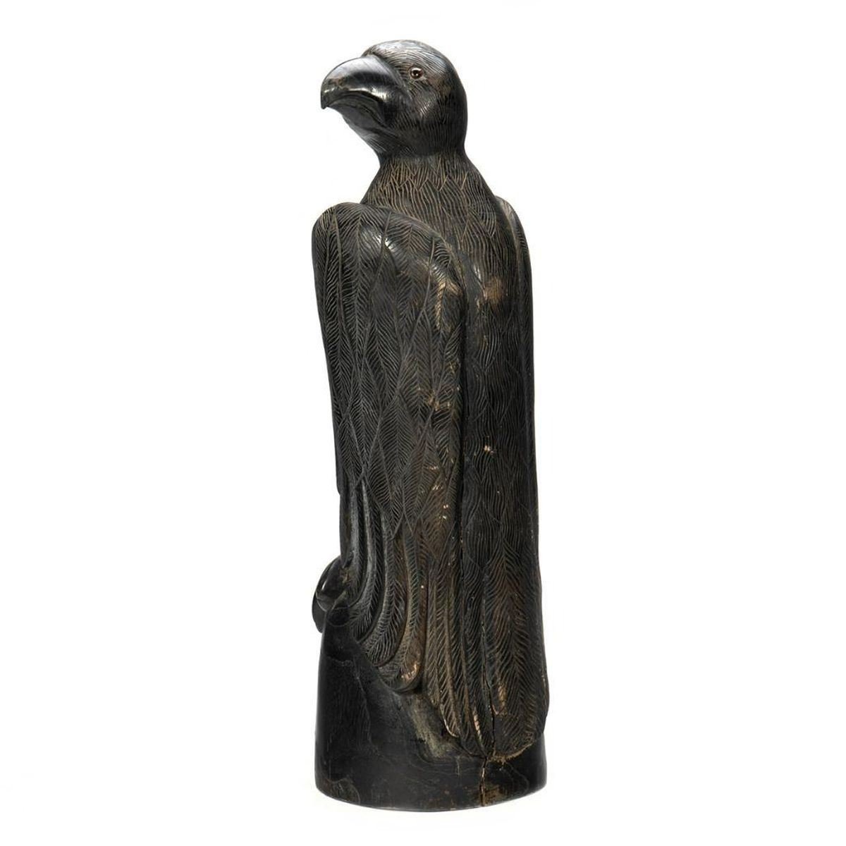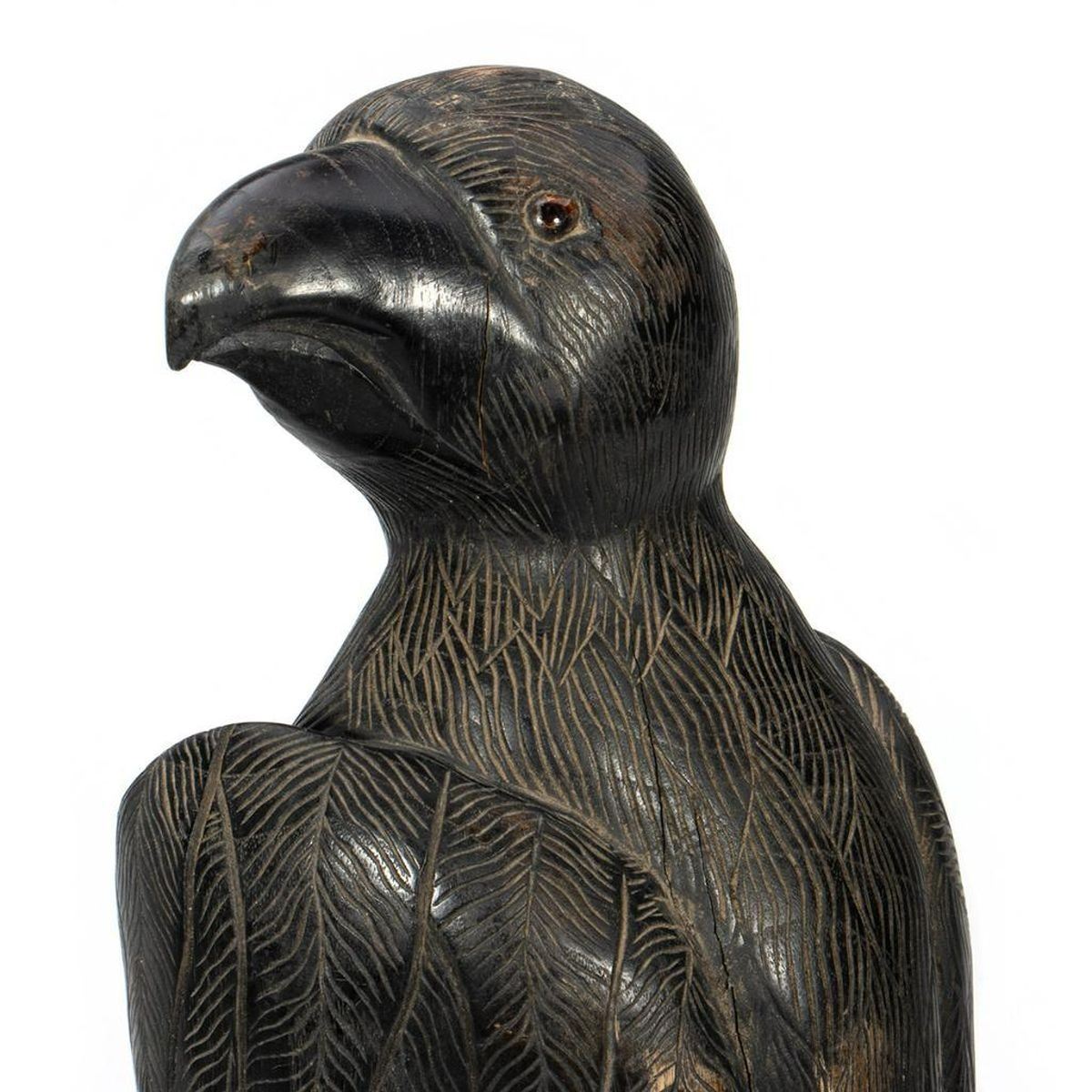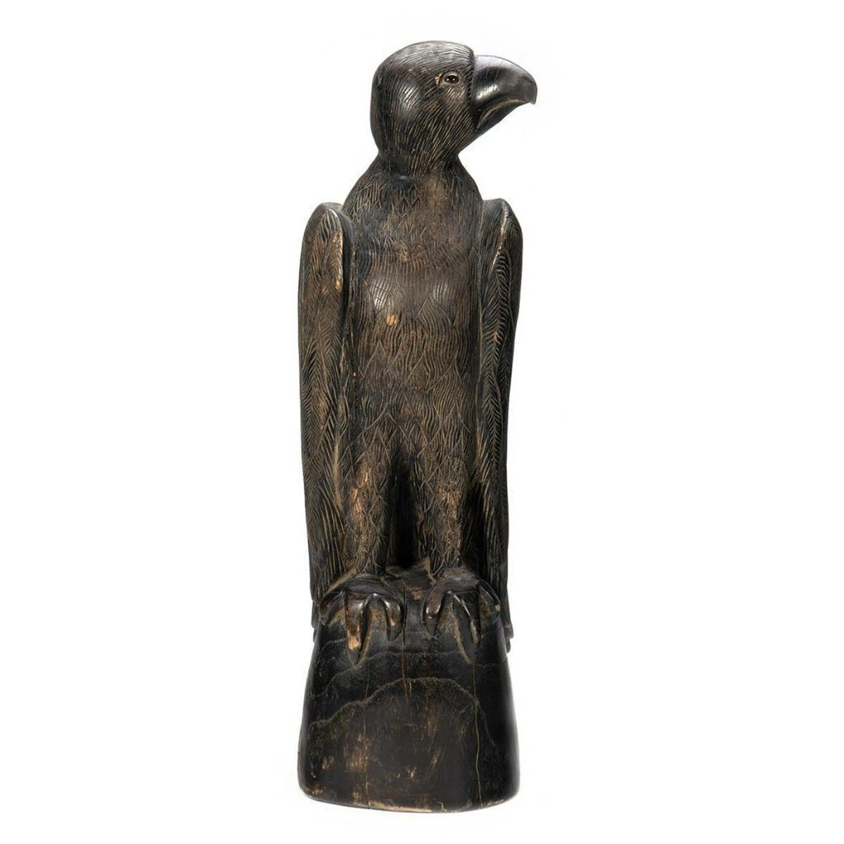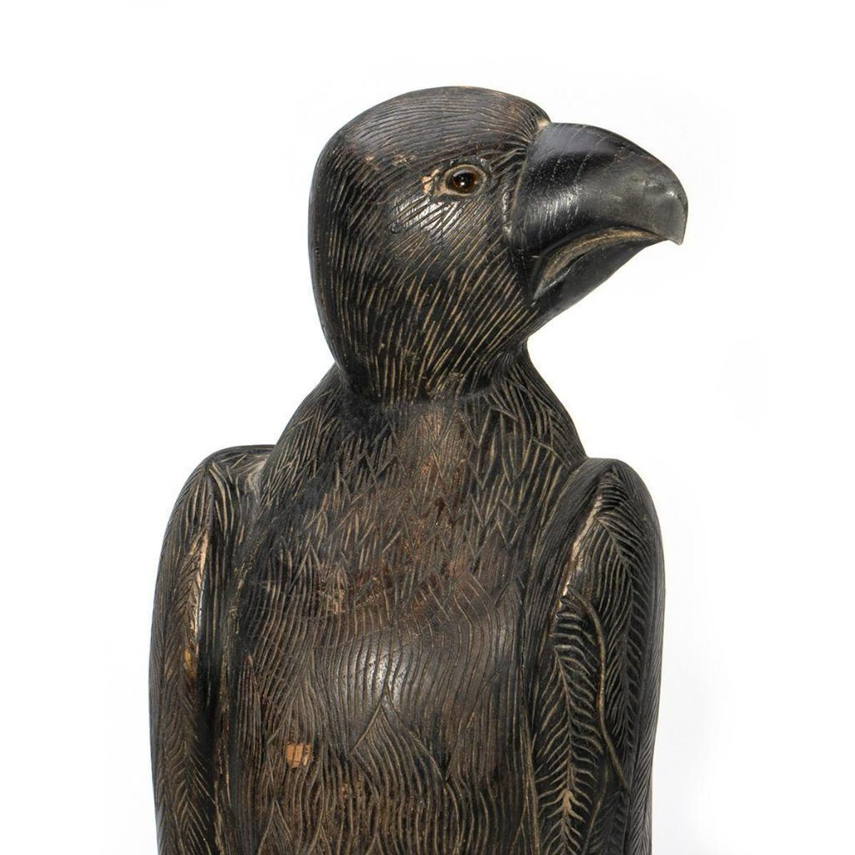 With glass eyes, perched on a plinth. 23in. h. Condition: Some age cracks.