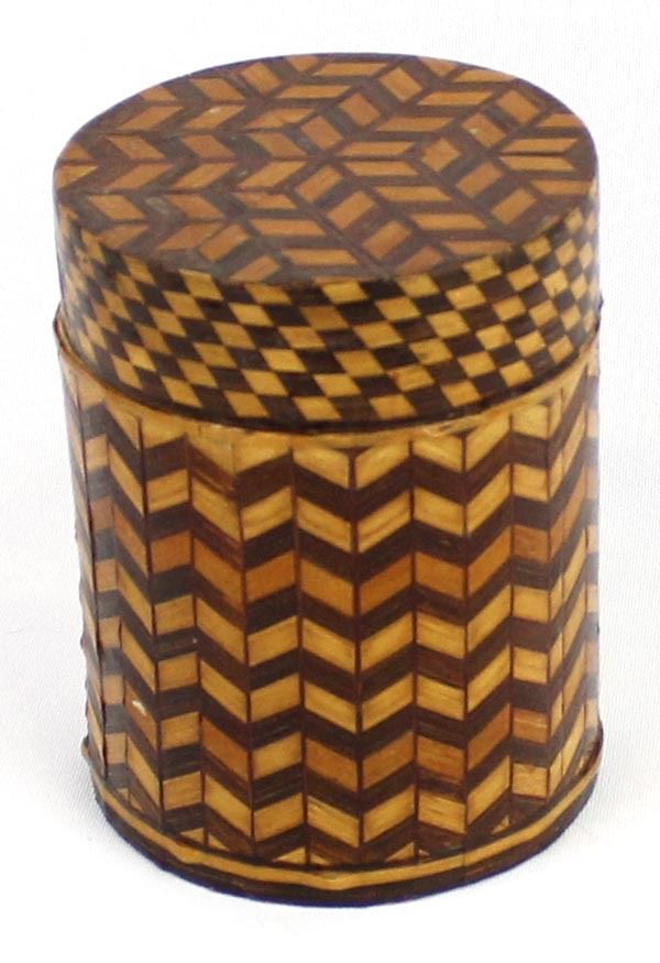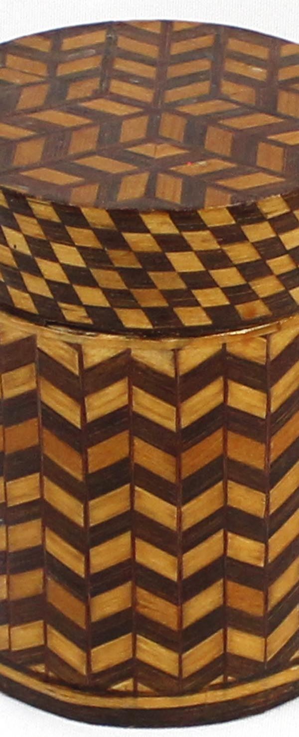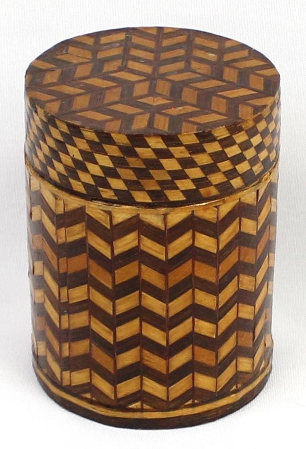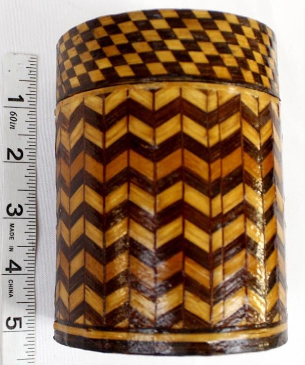 Carved Wooden two toned Lidded Box, three dimensional painted effect. 3 1/2 x 6''T