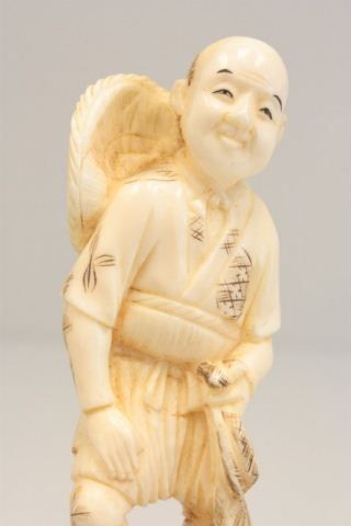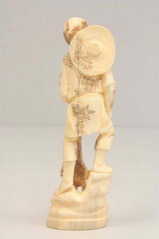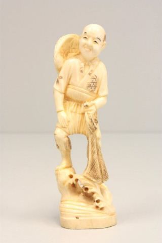 Carved bone figure  Man Holding Net