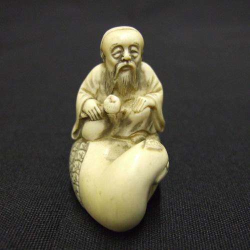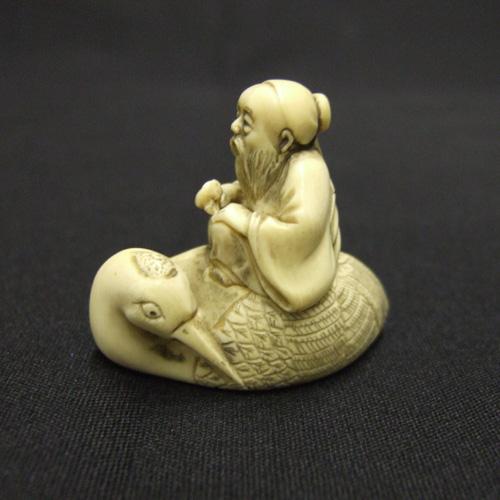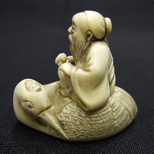 Carved ivory netsuke; old man with crane; 1 1/2" high; artist signed on bottom (no visible defects)