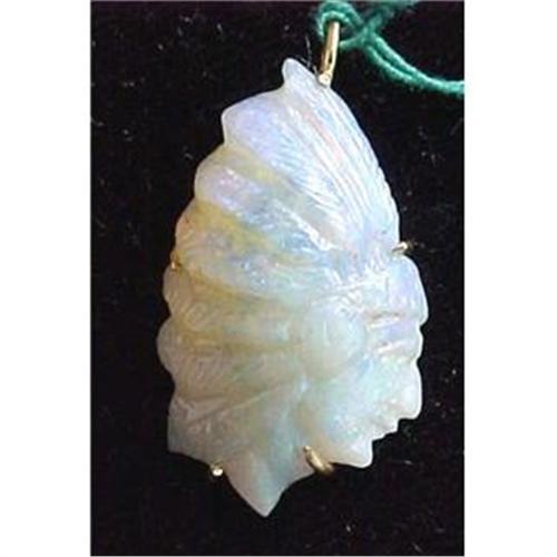 <tr><td>Title:Carved opal Indian head in 14kyg bezel</td></tr>