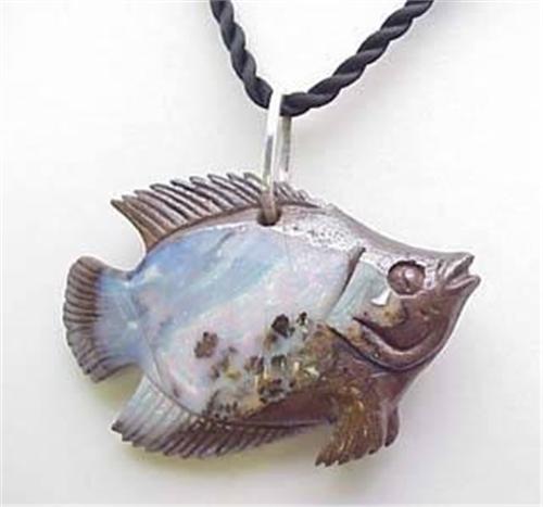 Carved opal fish with natural matrix 55x35mm on cord necklace