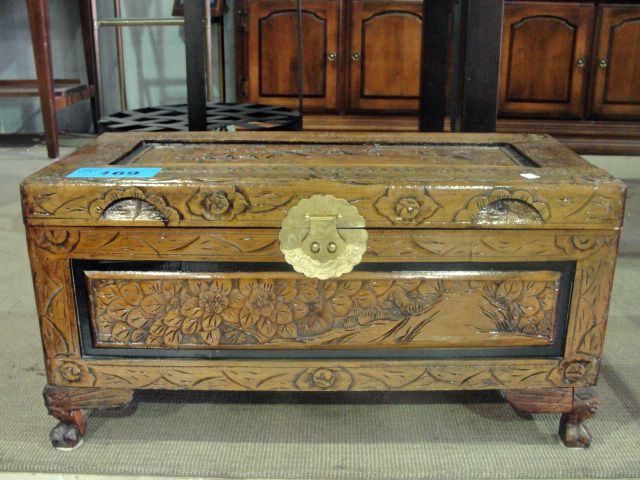 Carved oriental style decorative storage trunk