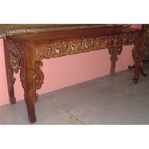 <table width="100%" border="0" cellspacing="0" cellpadding="4"><tr><td><em> </em></td></tr><tr> <td width="100%"> Carved teakwood large console 19th Century </td></tr><tr> <td> </td></tr><tr> <td>Reference #: 600_660</td></tr><tr><td>Condition:excellent</td></tr><tr><td>Year:19th Century</td></tr><tr><td>Height:35.5</td></tr><tr><td>Depth:23.75</td></tr><tr><td>Width:78.5</td></tr><tr><td>Title:Carved teakwood large console 19th Century</td></tr><tr><td>Location:Atlanta, GA</td></tr></table>