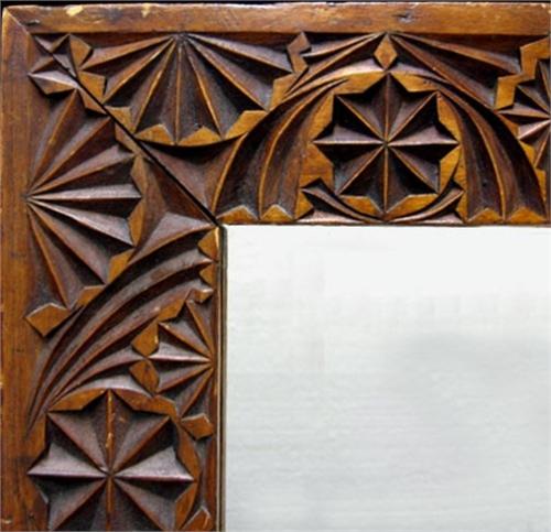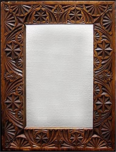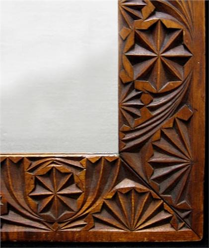 Carved walnut framed mirror; rectangular form; butter mold design; 19th C. 17" x 12 1/2" (no visible defects)