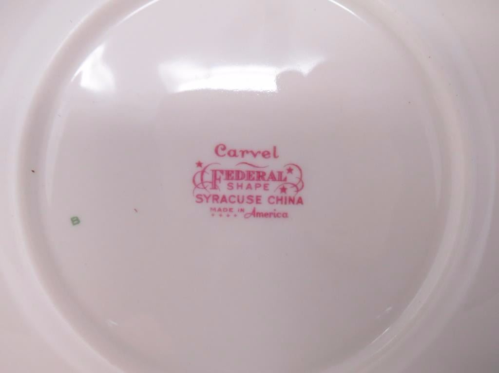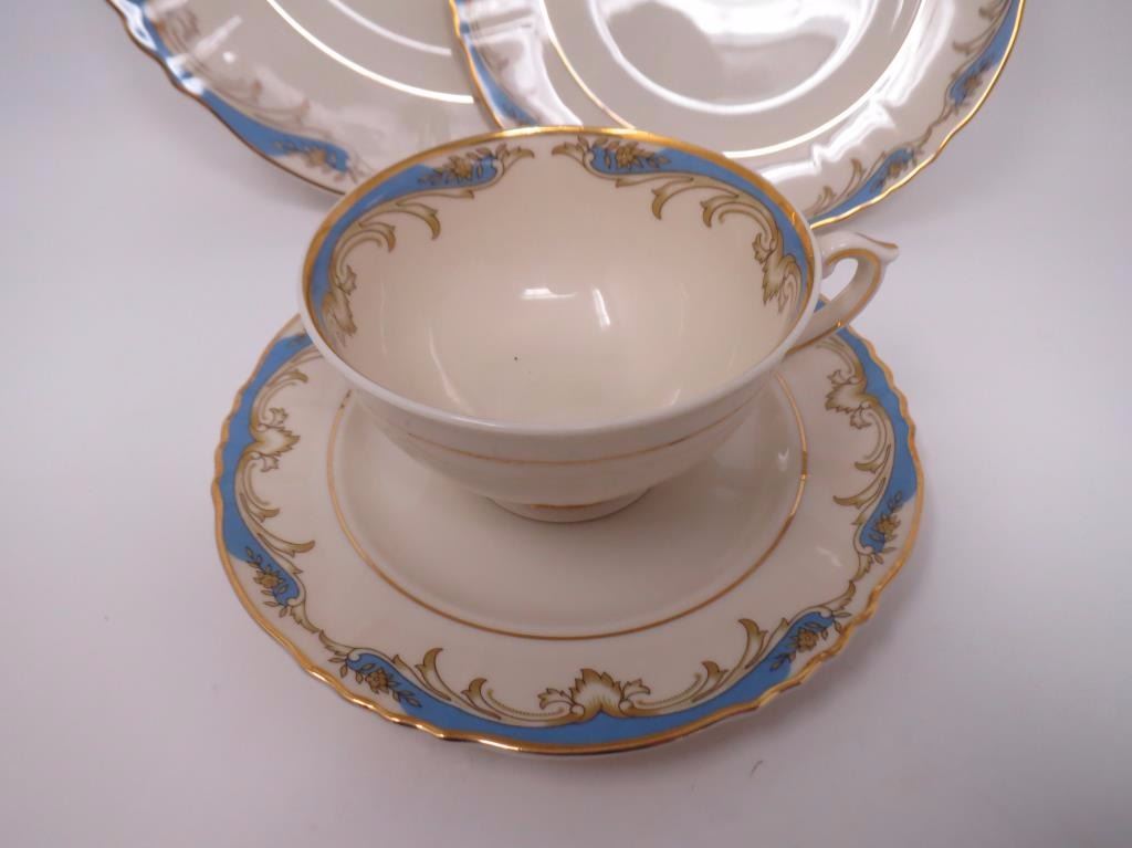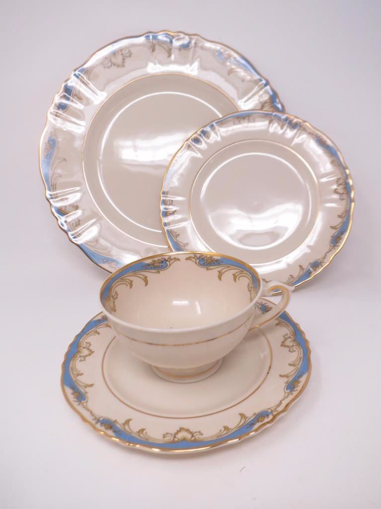 Plates, salad plates, sandwich plates, cups, and saucers, 1 small bowl, 1 bow., gravy boat, cream and sugar