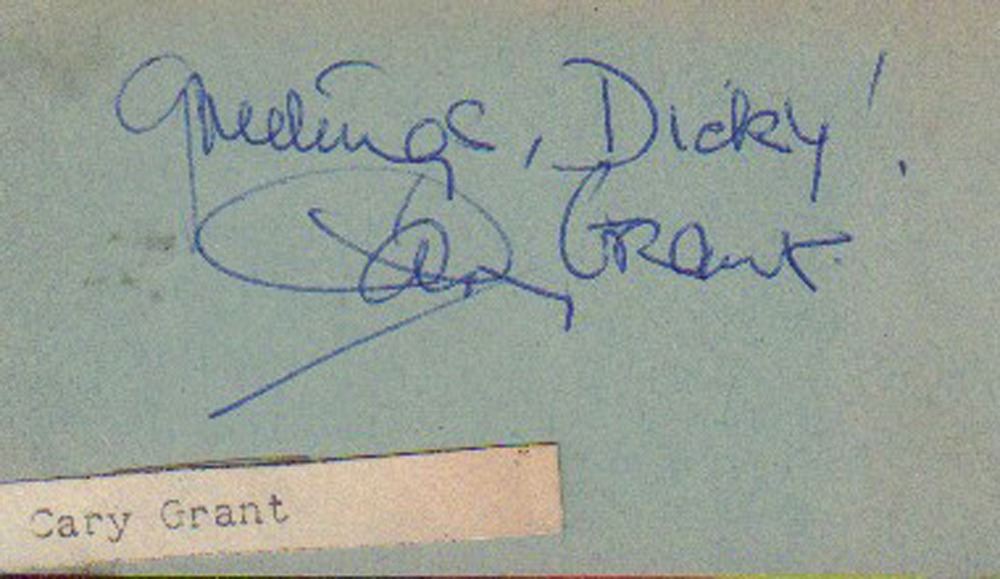 Two inch by four inch rare Ontra Cafeteria parking stub signed by Cary Grant. The Ontra Cafeteria was one of the hot spots of Beverly Hills in the 1950s. All items come with a certificate of authenticity good for the life of the piece.