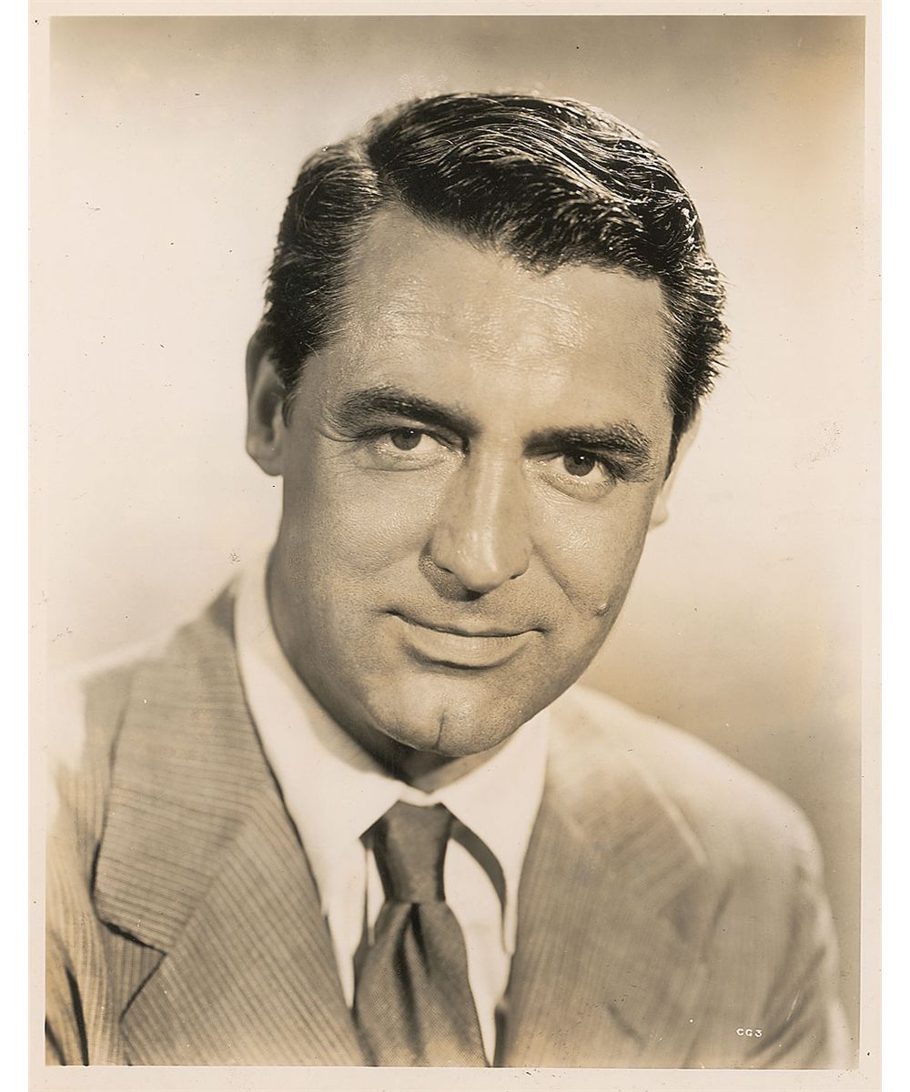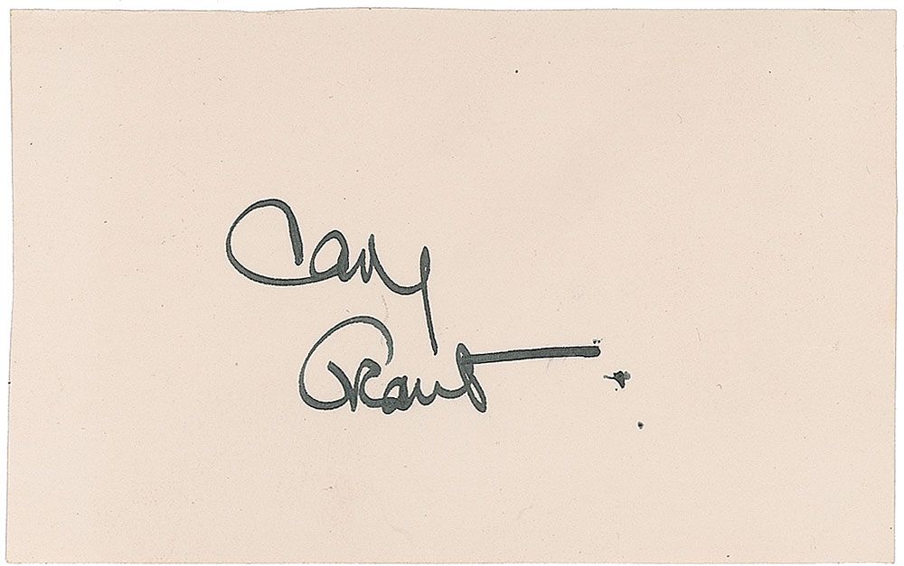 Bold vintage ink signature, “Cary Grant,” on an off-white 4 x 2.5 card. In fine condition. Accompanied by a vintage unsigned 8 x 10 glossy photo.
