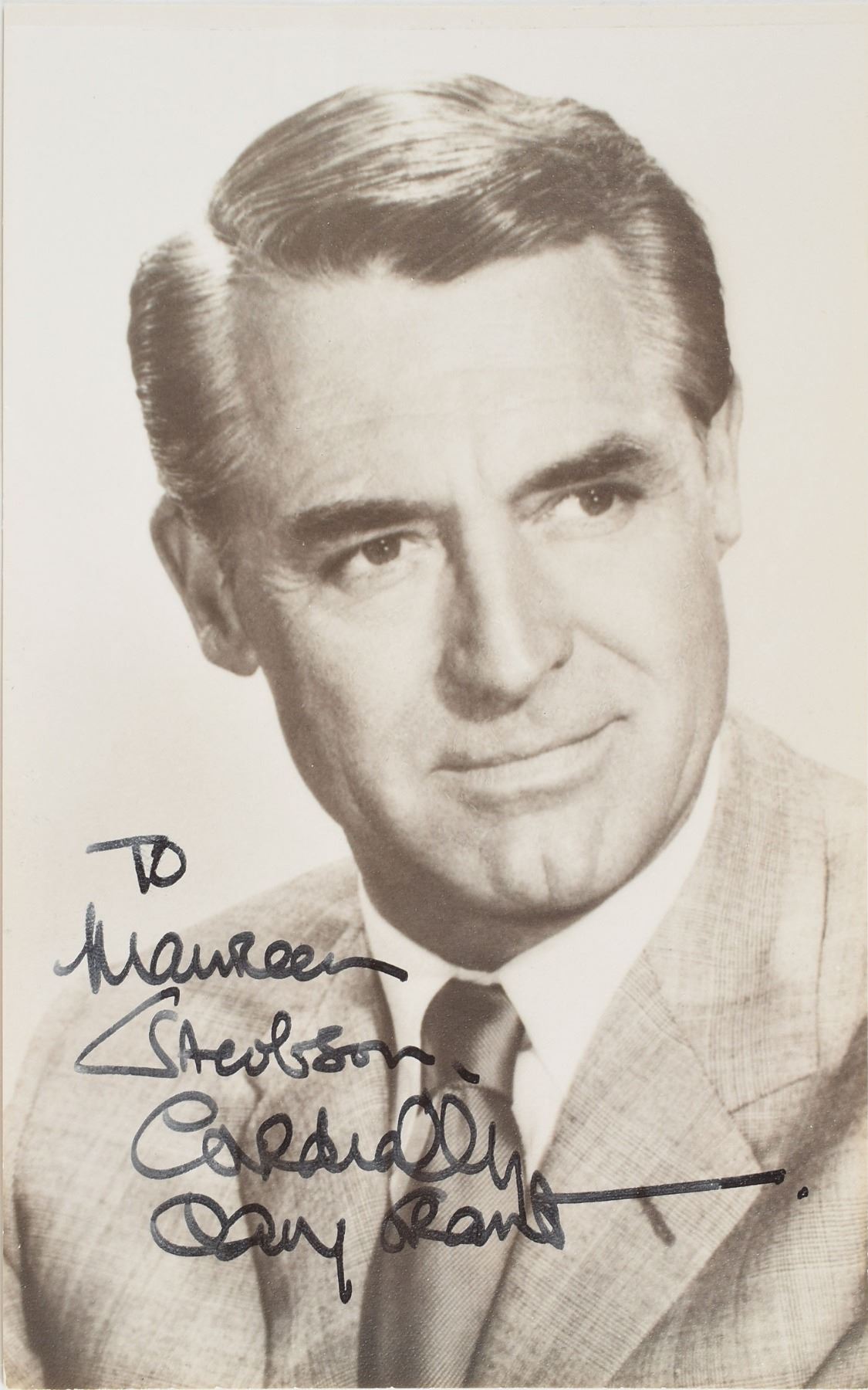 Vintage matte-finish 3.5 x 5.5 photo, signed and inscribed in fountain pen, "To Maureen Jacobson, Cordially, Cary Grant.” In fine condition, with a trivial paperclip impression to top edge.