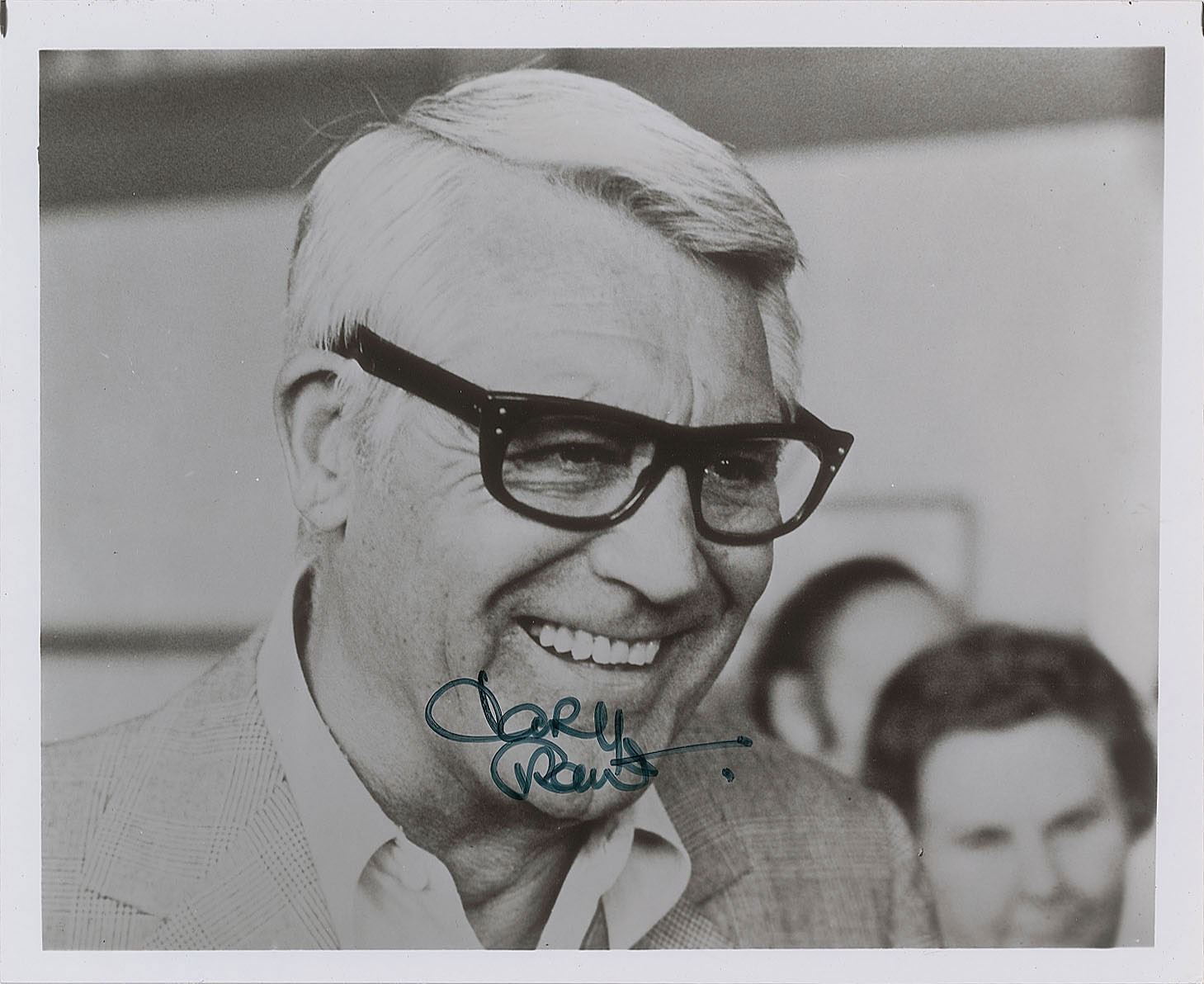 Glossy 10 x 8 photo of Grant in a cheerful close-up pose from later in his career, signed in black felt tip. In fine condition, with some light creases and surface impressions.