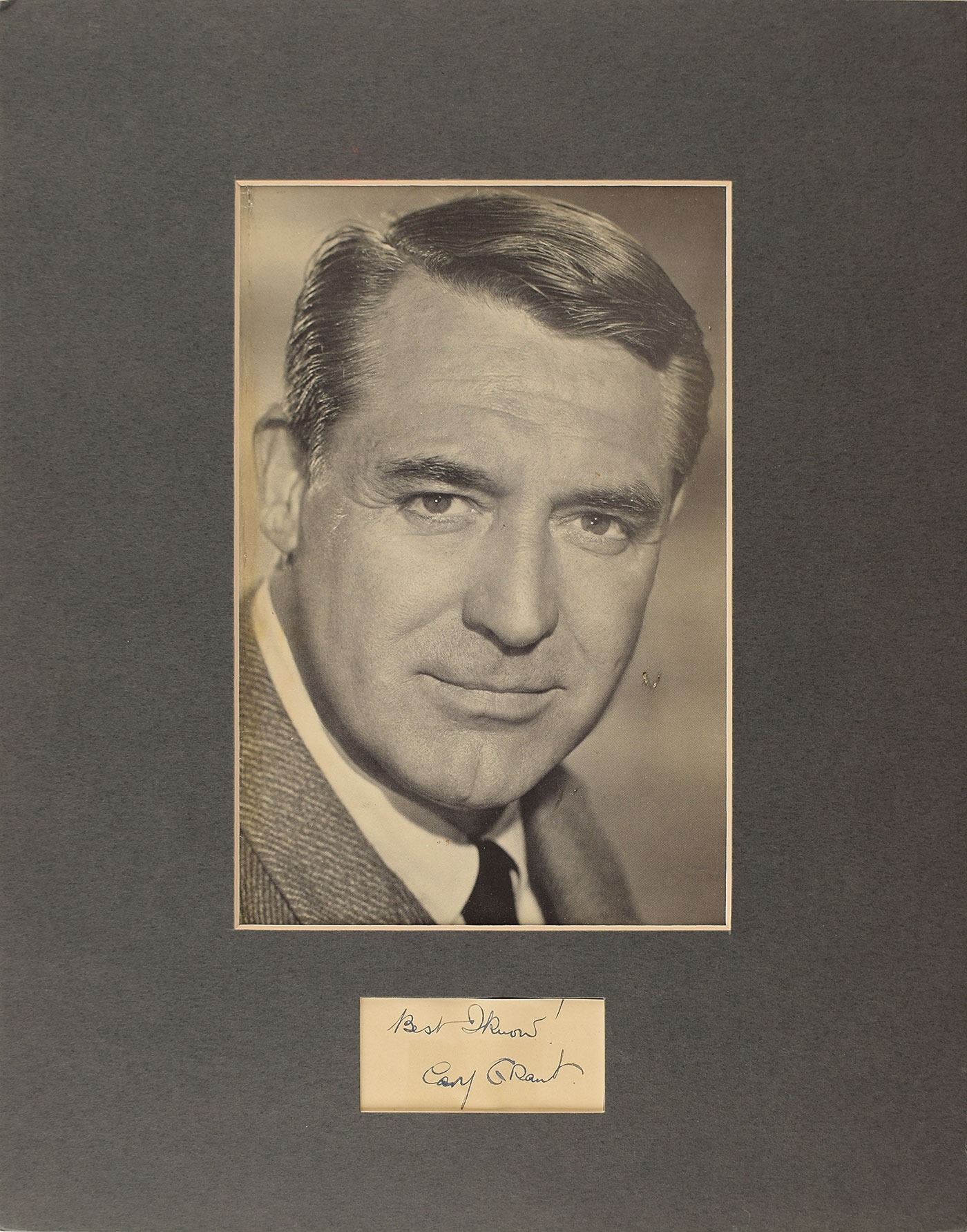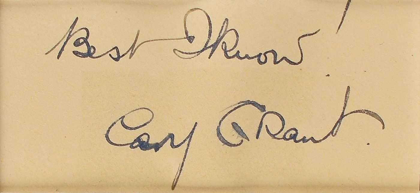 Vintage ink signature, "Best I know! Cary Grant,” on an off-white 2.75 x 1.25 slip. Matted with a photo of the leading man to an overall size of 11 x 14. In fine condition, with tape on the back lightly showing through.