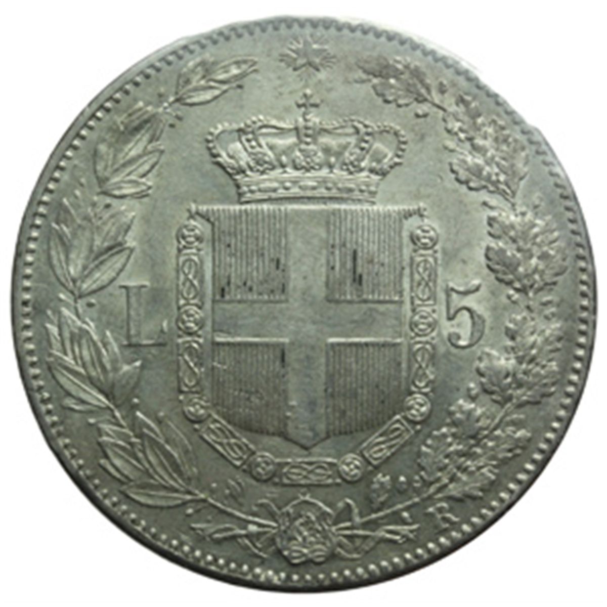 Casa Savoia - Regno di Sardegna - Regno di Italia. Regno di Italia. Umberto I (1878-1900). 5 lire 1879 R. Pag. 590. Mont. 33. AG. Colpetto sul bordo ad ore 6 del R/. SPL. Periziata Rollero.