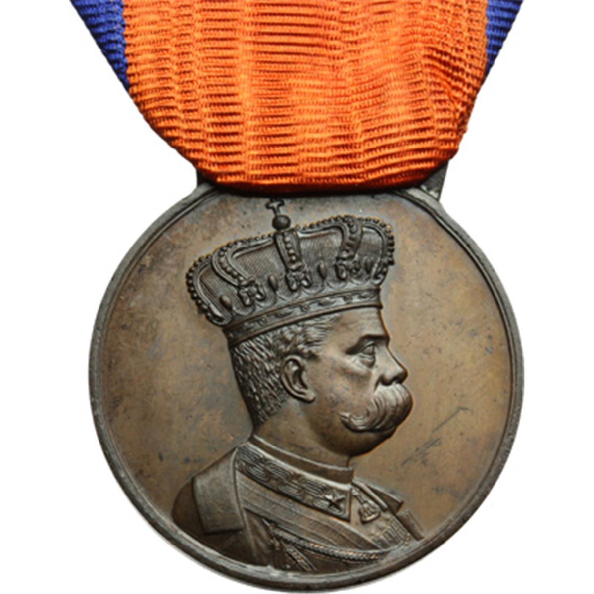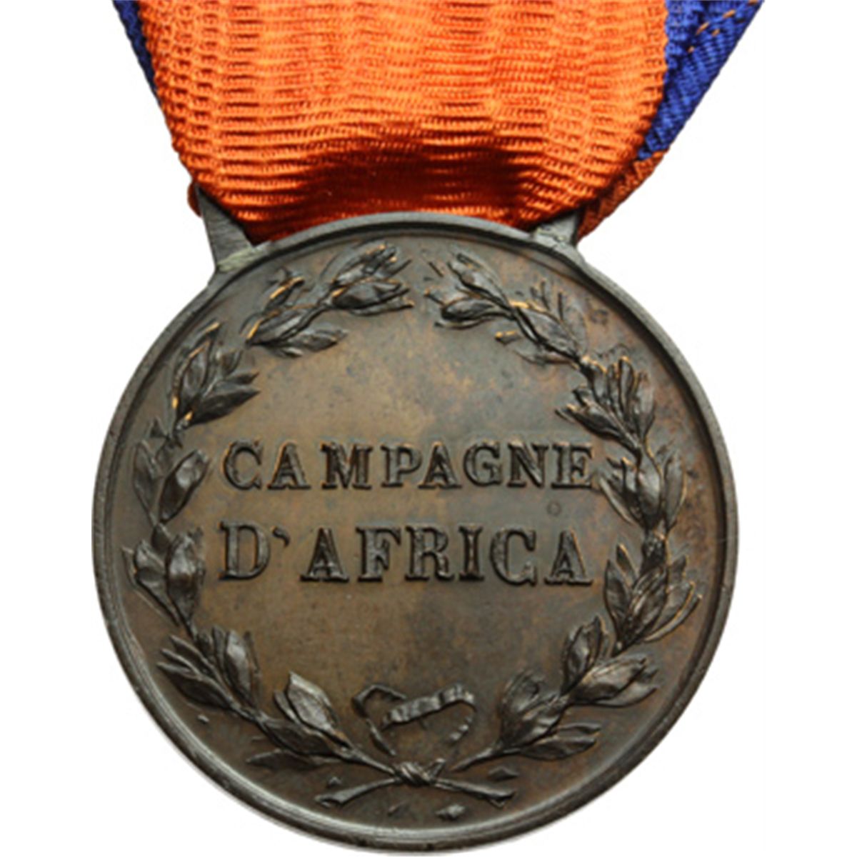 Casa Savoia - Regno di Sardegna - Regno di Italia. Regno di Italia. Umberto I (1878-1900). Medaglia con nastrino originale rosso bordato di azzuro. Bini 72. AE. FDC. Istituita il 3 novembre 1894 e concessa a tutti i militari dell'esercito e marina, agli indigeni delle truppe coloniali e ai civili italiani impegnati in Africa.