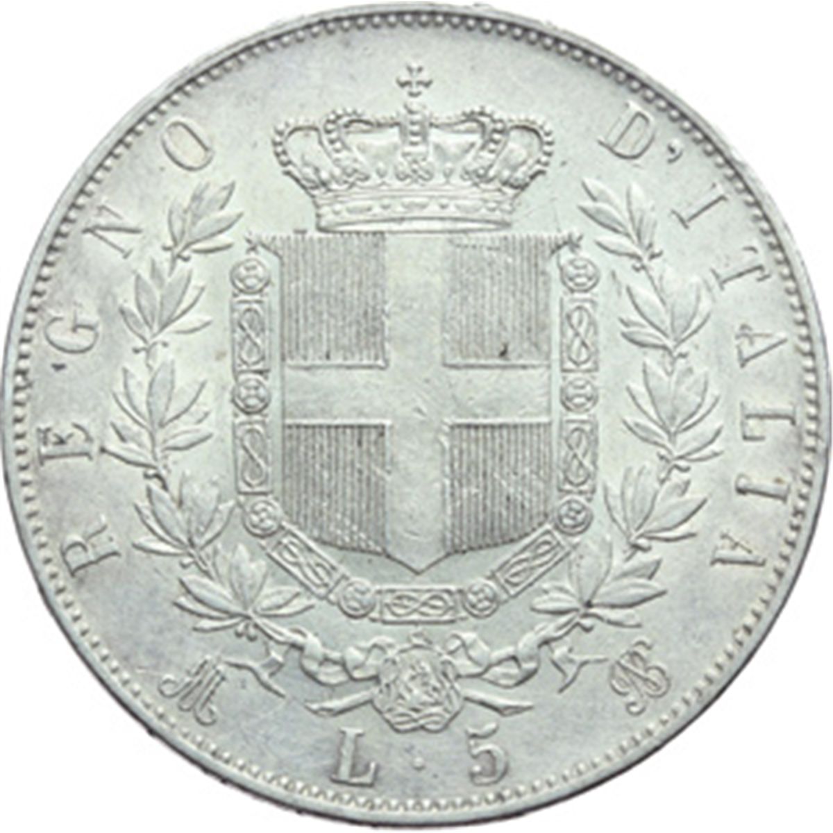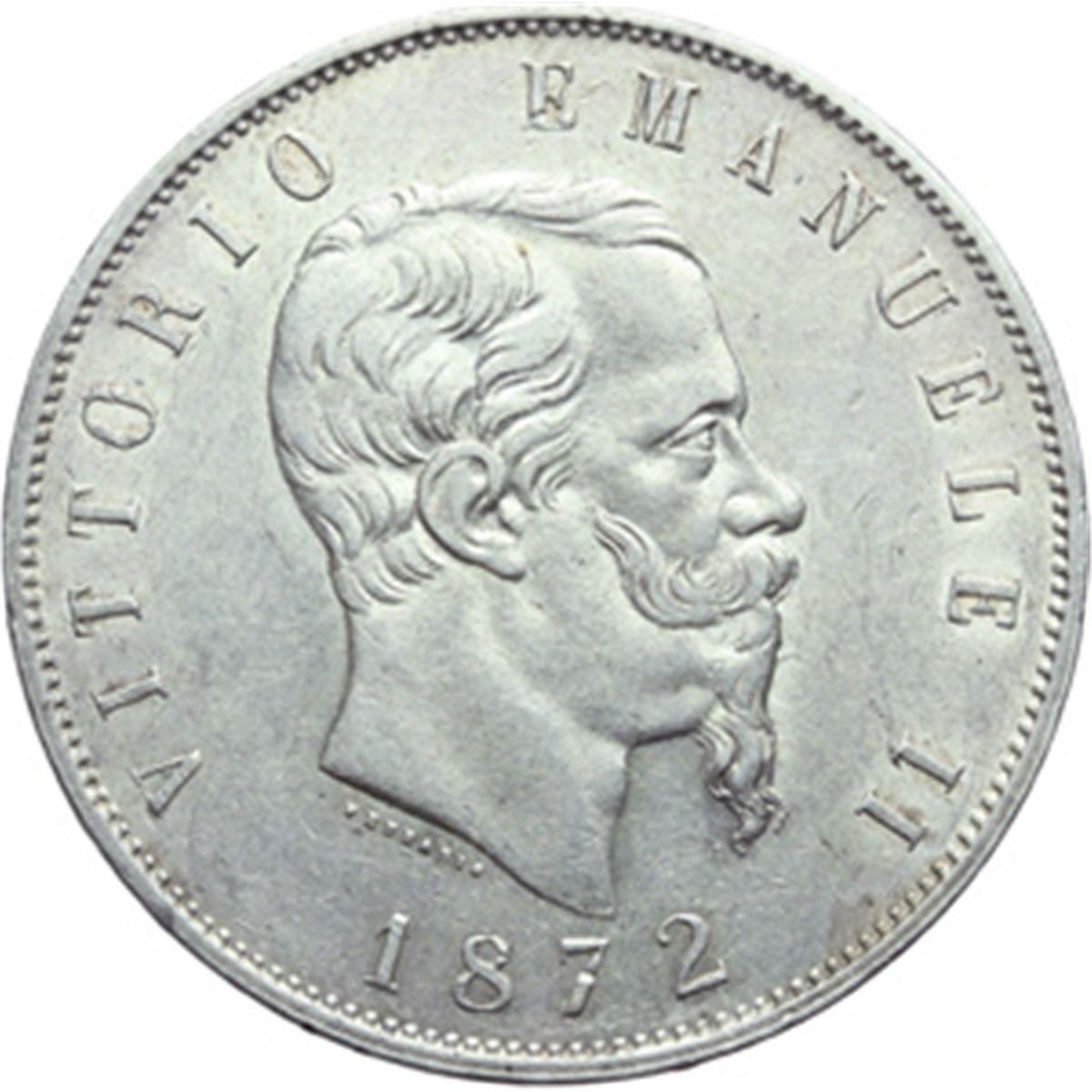 Casa Savoia - Regno di Sardegna - Regno di Italia. Regno di Italia. Vittorio Emanuele II (1861-1878). 5 lire 1872 M. Pag. 494. Mont. 177. AG. qSPL.