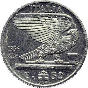 Casa Savoia - Regno di Sardegna - Regno di Italia. Regno di Italia. Vittorio Emanuele III (1900-1943). 50 centesimi 1936 PROVA. Pag. P.P. 283. Mont. 258. NI. RRR. qFDC/FDC.