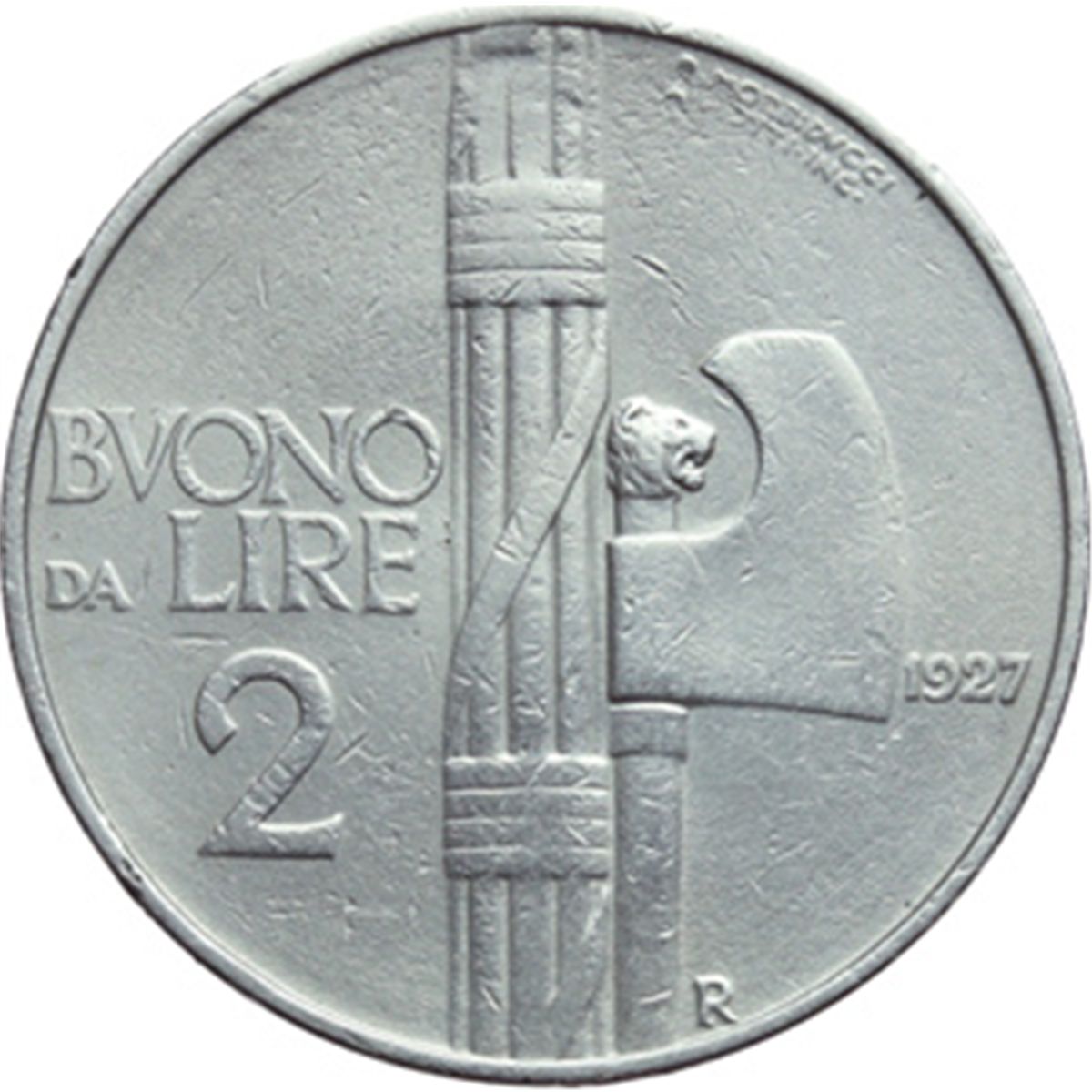 Casa Savoia - Regno di Sardegna - Regno di Italia. Regno di Italia. Vittorio Emanuele III (1900-1943). Buono da 2 lire 1927. Pag.-. Mont.16E bis. NI. RRRRR. Asse spostato di 15¬8 qBB.