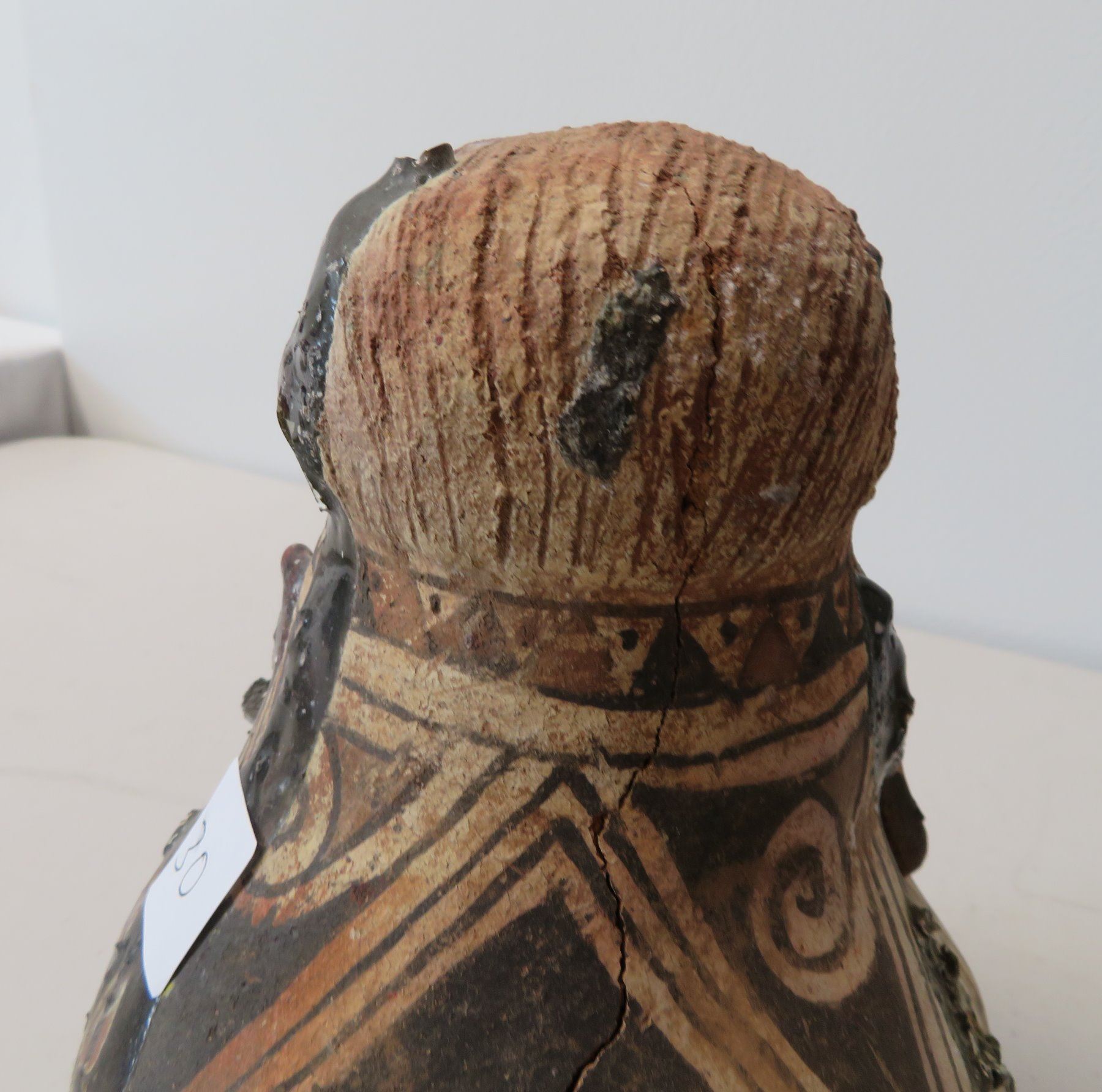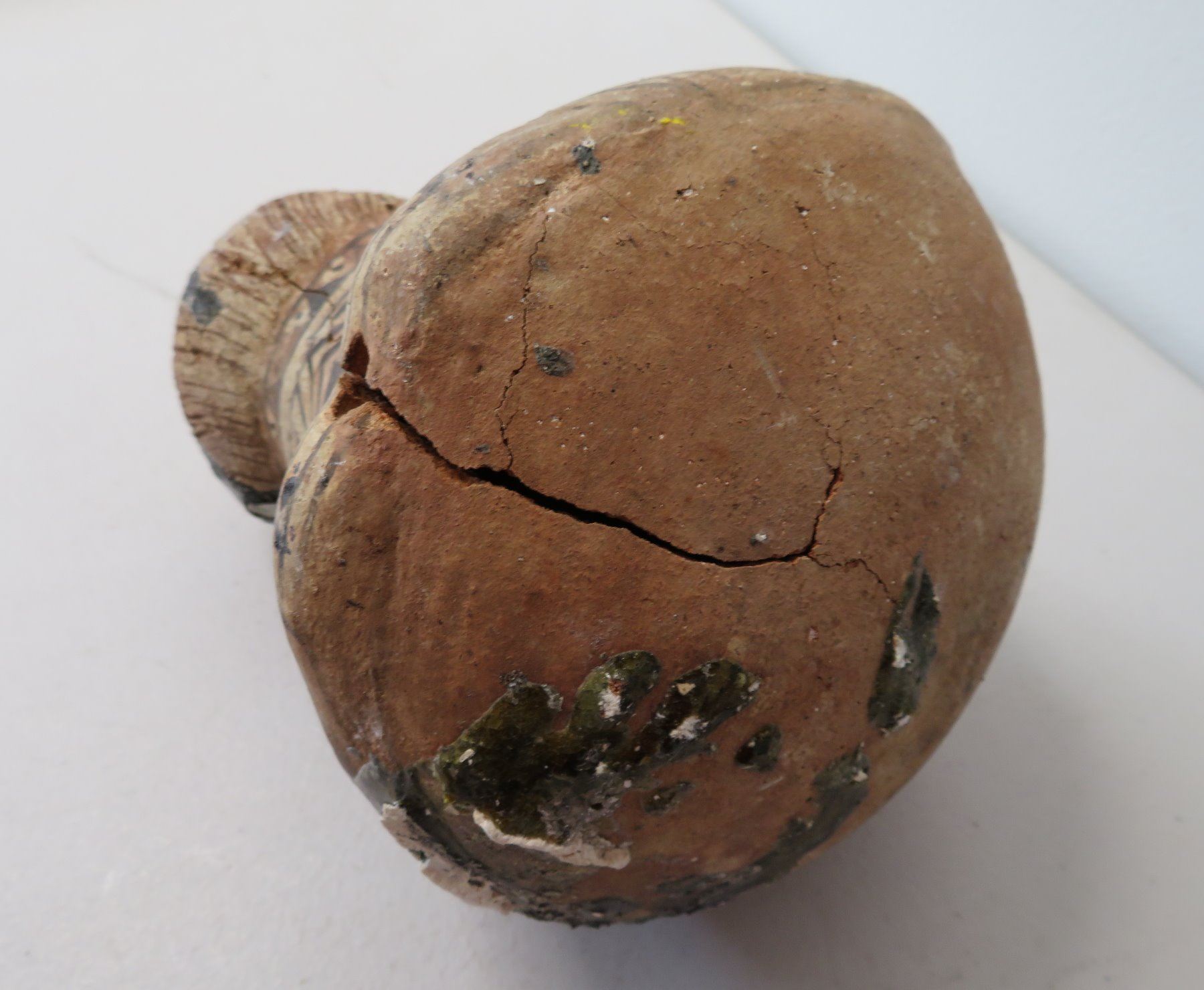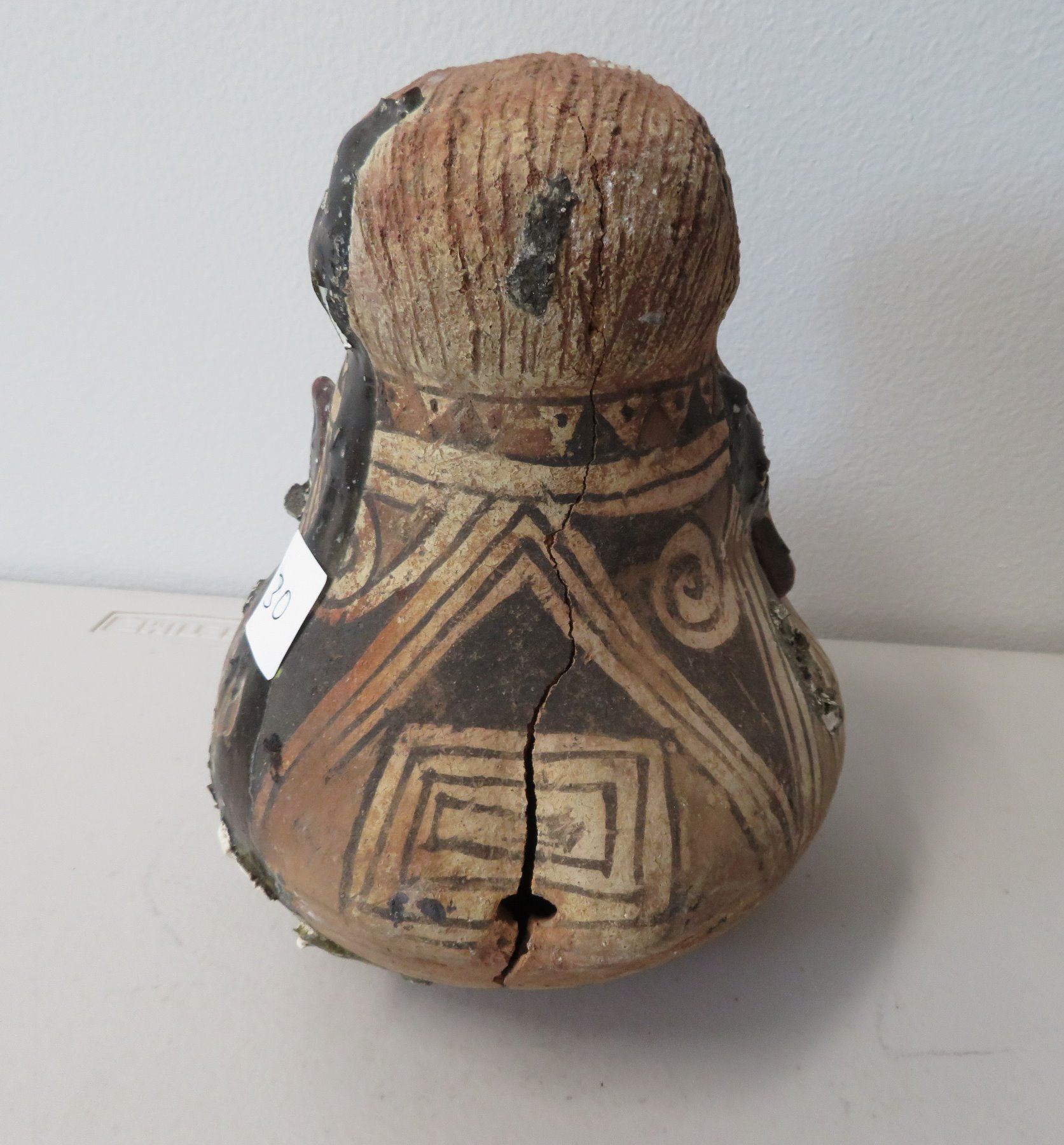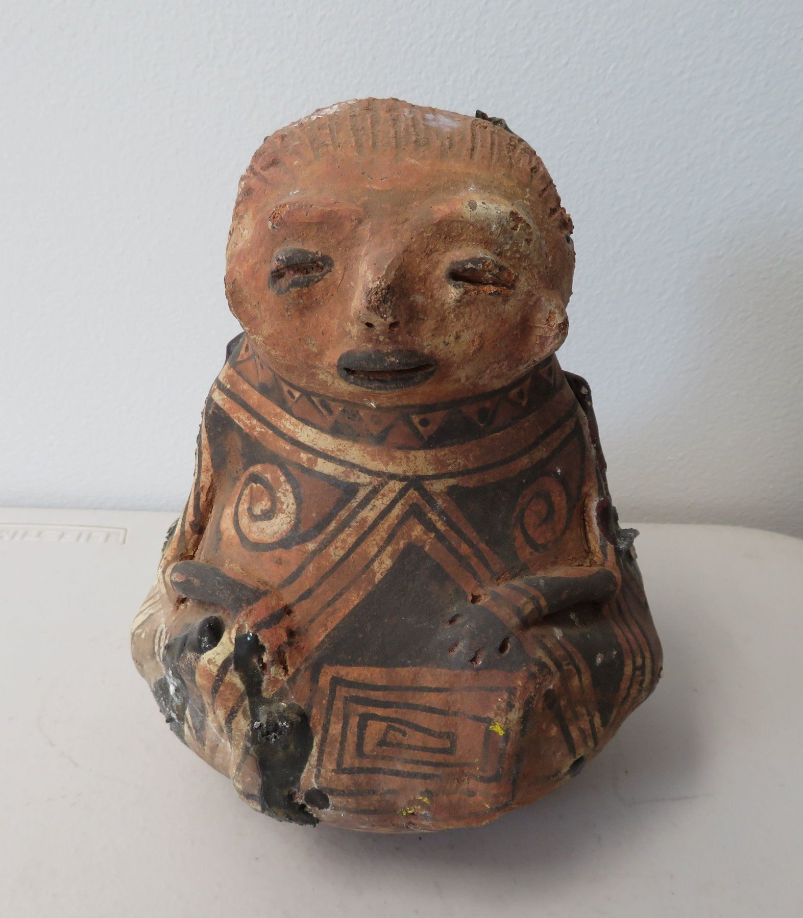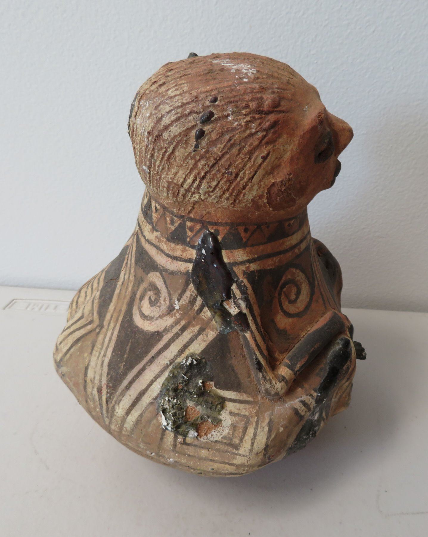 Casas Grande Effigy Figure, age unknown. Made of clay and paint, the item measures 6" x 6 1/2" x 8". Chihuahua, Mexico. Condition: Badly damaged, see images. Shipping: $30.00 w/insurance and signature, double-boxed.