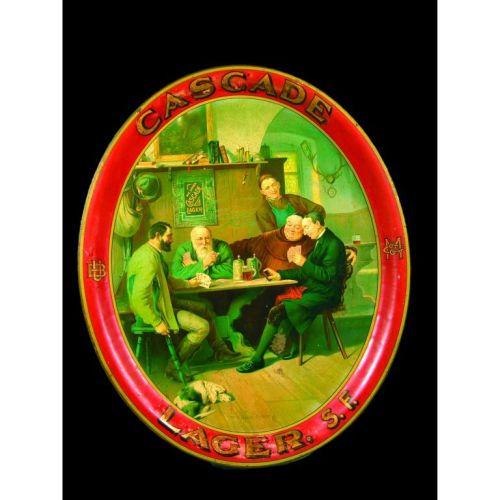 Cascade Lager Tin Serving Tray, San Francisco, California, some discoloration around the border otherwise very good condition, 13 1/2 x 16 1/2 inches.