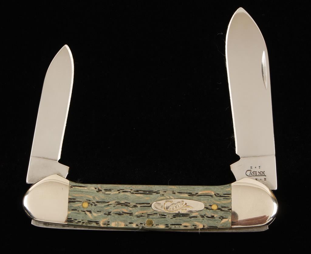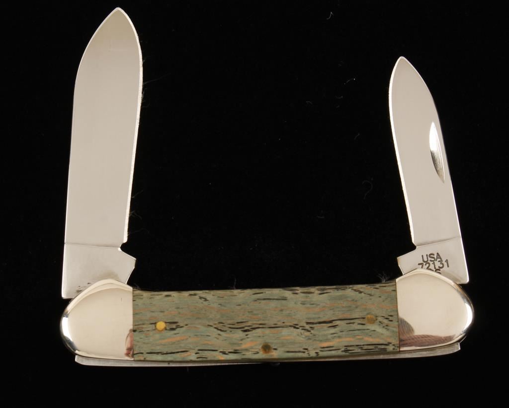 2 stainless steel blades, canoe green curly. 72131, mint condition. Retail price $44.99
