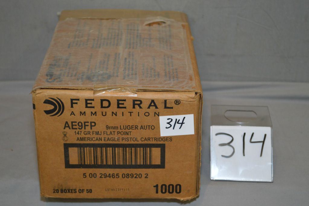 Case Lot : 20 Boxes ( 50 rnds per ) 1000 Rnds Federal American Eagle .9 MM Luger cal 147 Gr FMJ Flat Point New Ammo