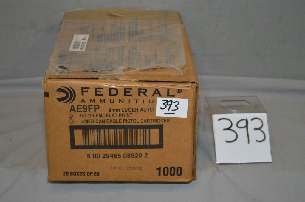 Case Lot : 20 Boxes ( 50 rnds per ) 1000 Rnds Federal American Eagle .9 MM Luger cal 147 Gr FMJ Flat Point New Ammo