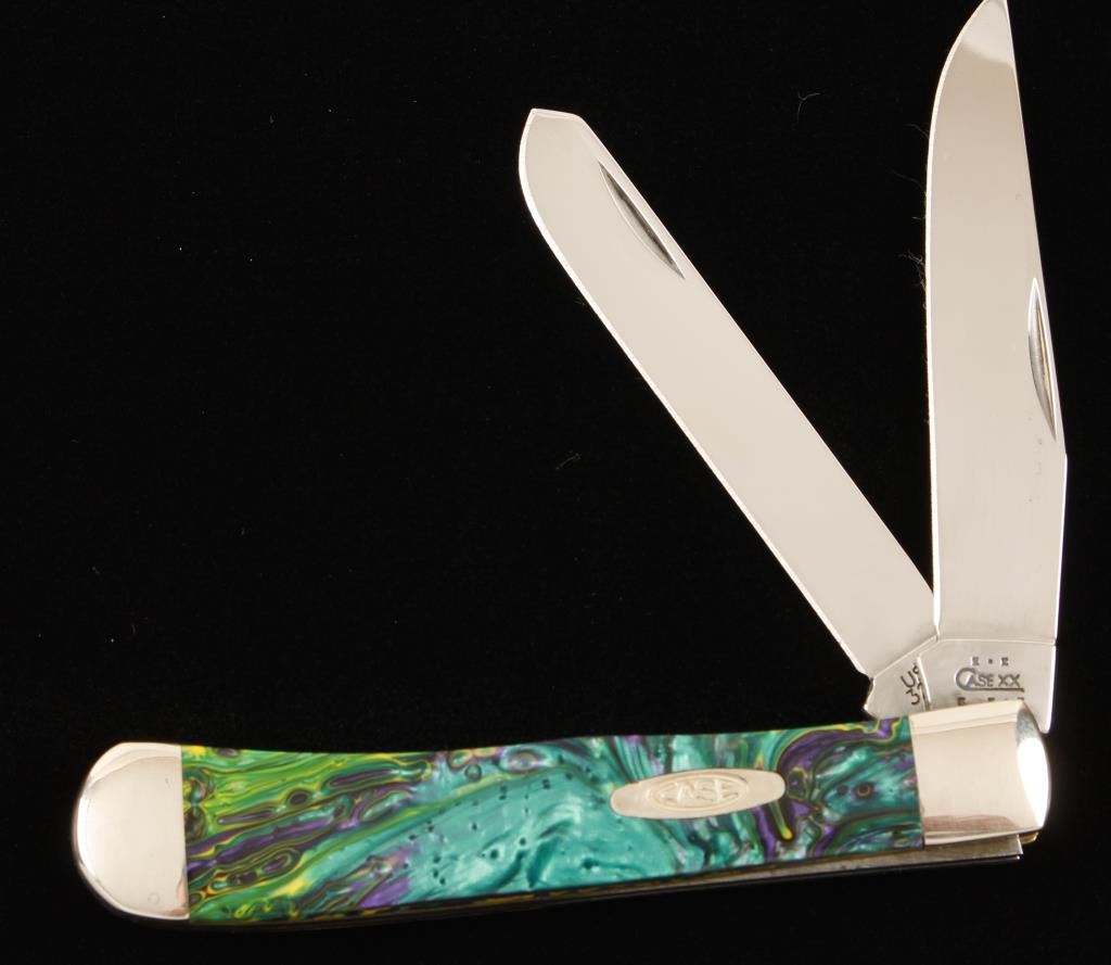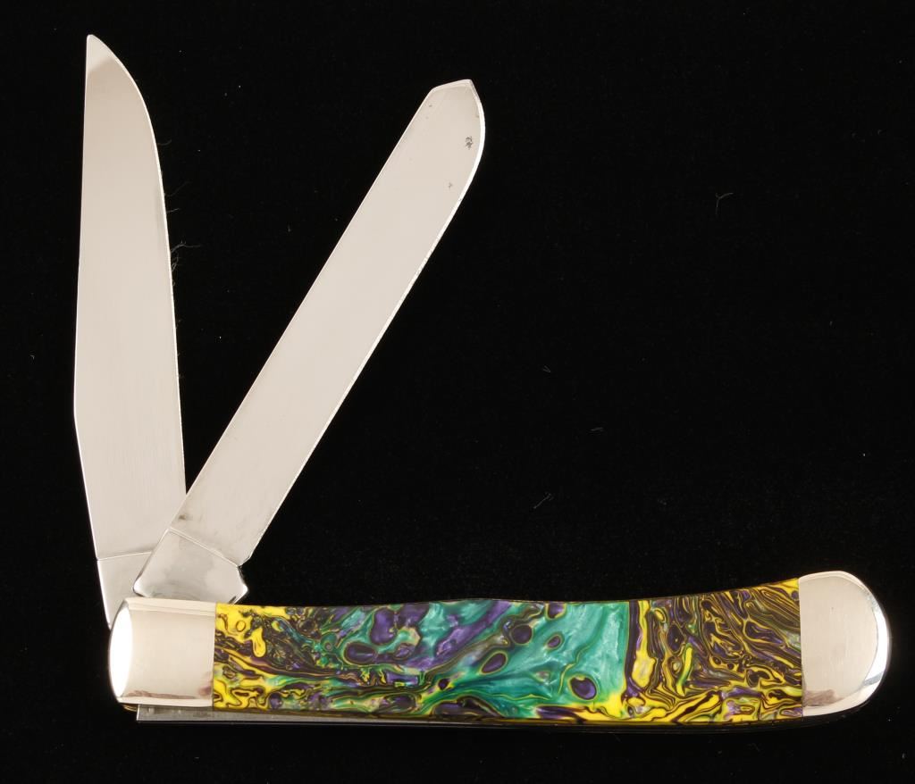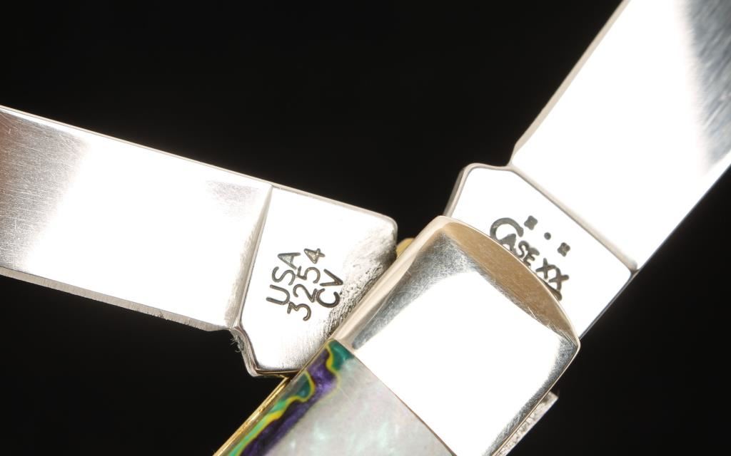 Green and purple cracked ice Corelon handle. Two-blades in Chrome Vanadium. 3254CV. Made in 2002.