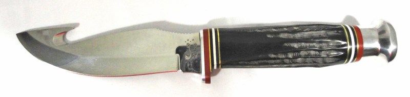Case and Sons Hunter Guthook. 8 3/4" overall length. 4 3/8" blade. Stainless steel. Black leather belt sheath. EST:$150-$175