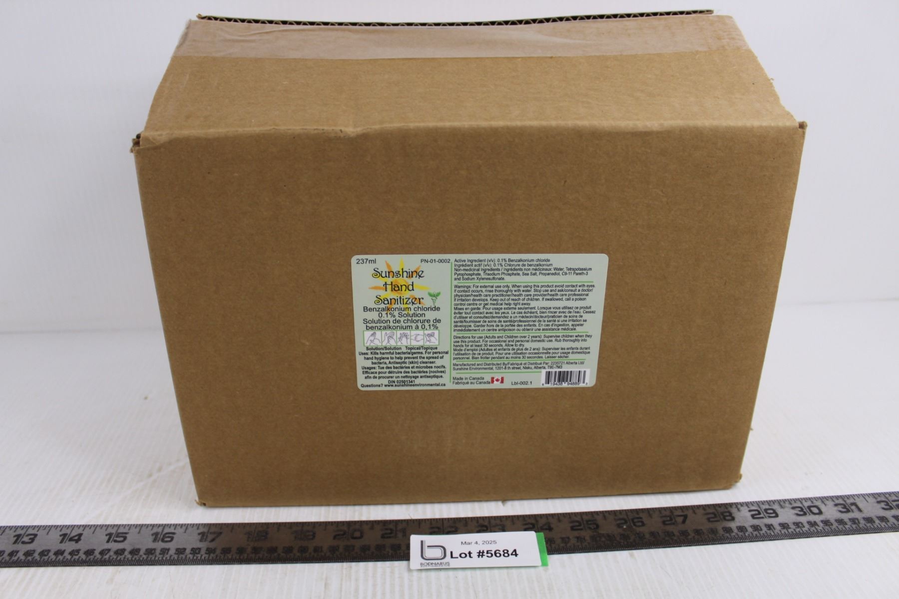 Case of 24 - 273 ml Spray Bottles of Sunshine Hand Sanitizer - Unused 12.5" x 8.5" x 8.5" - CANNOT BE SHIPPED!!!
