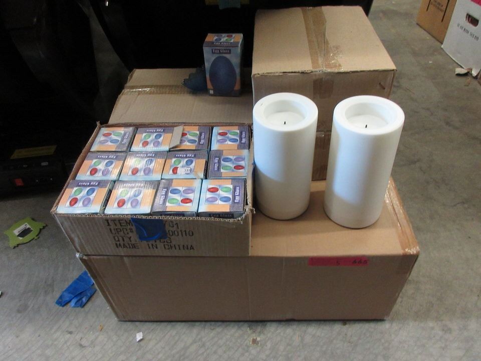 Includes 4 boxes of egg shaped glass trinket boxes.
