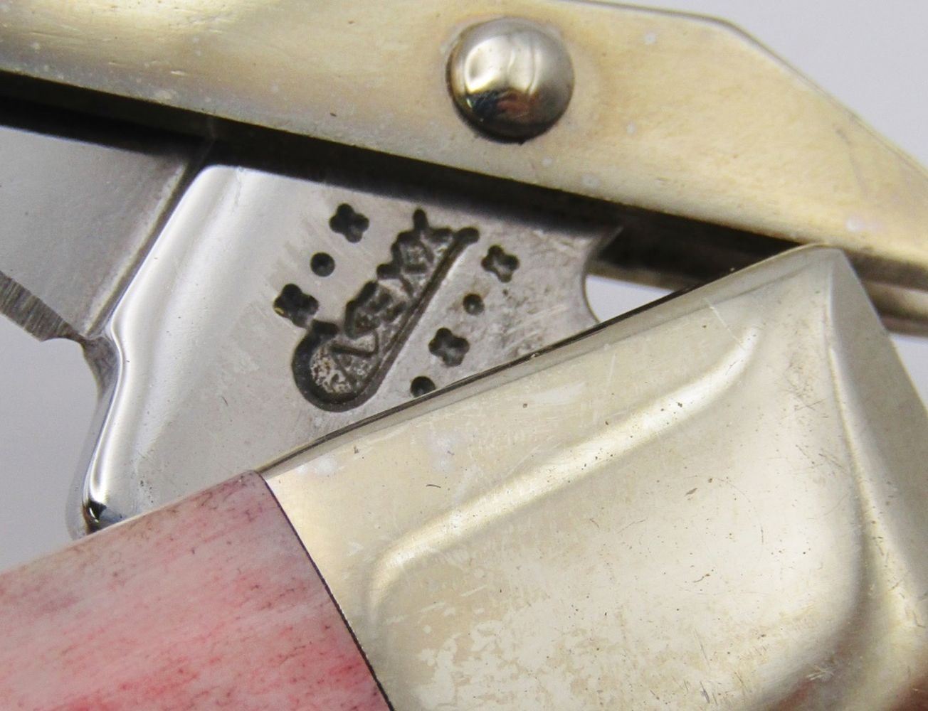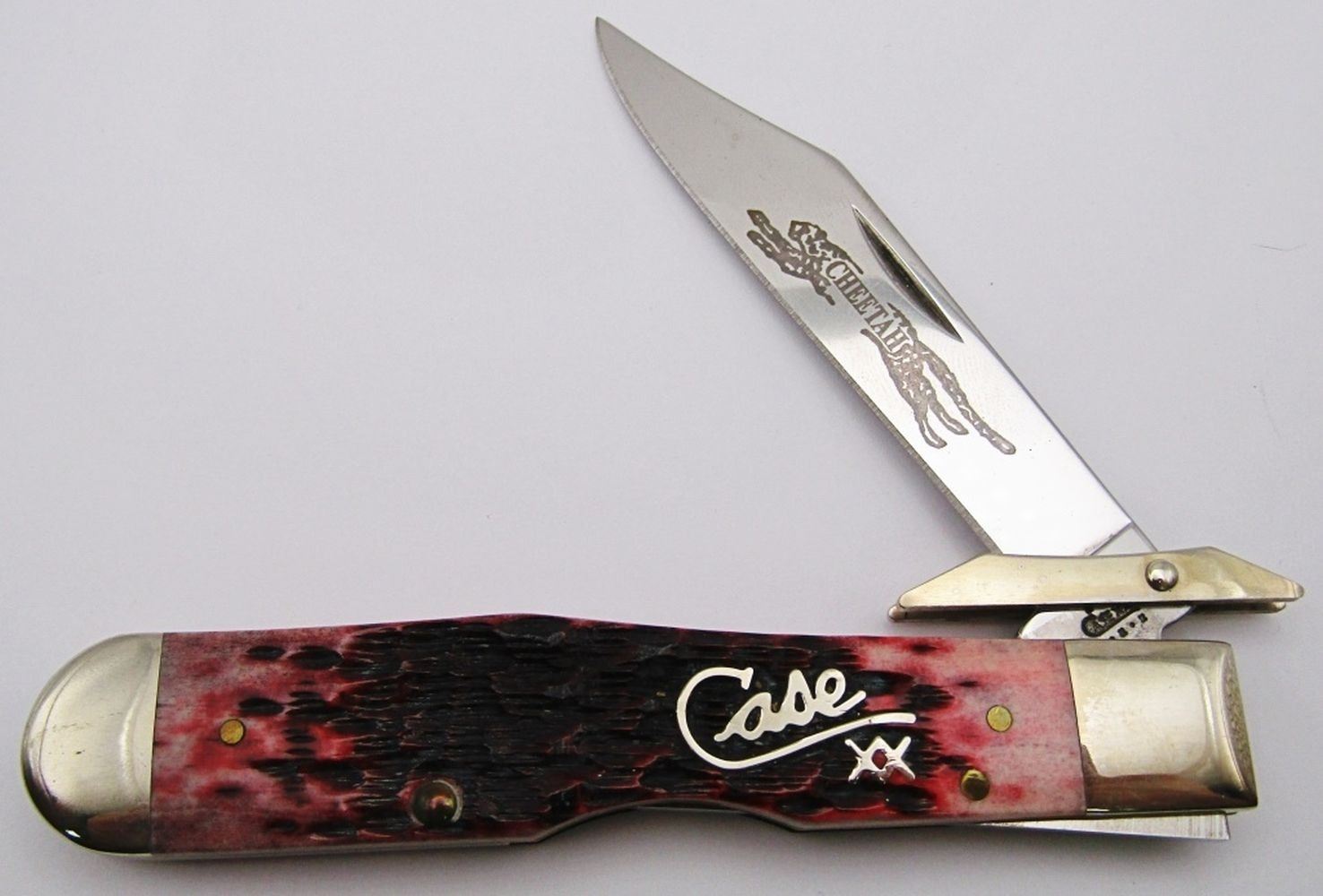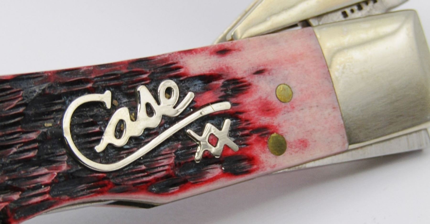 Swing Guard Folding Knife in Collecible Tin with Red Jigged Bone Handle and Stainless Steel Blades; MINT Condition; Lockback Type!