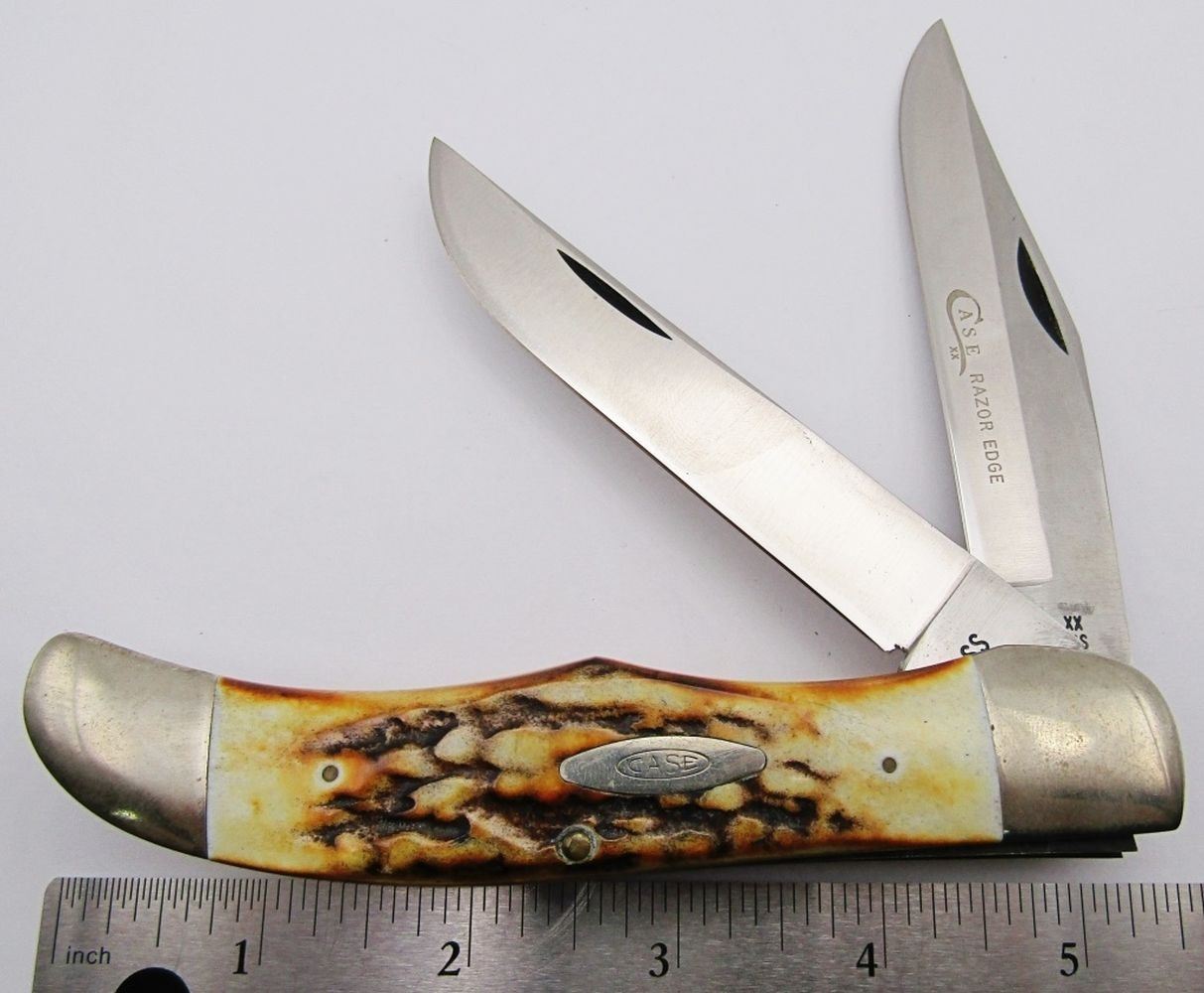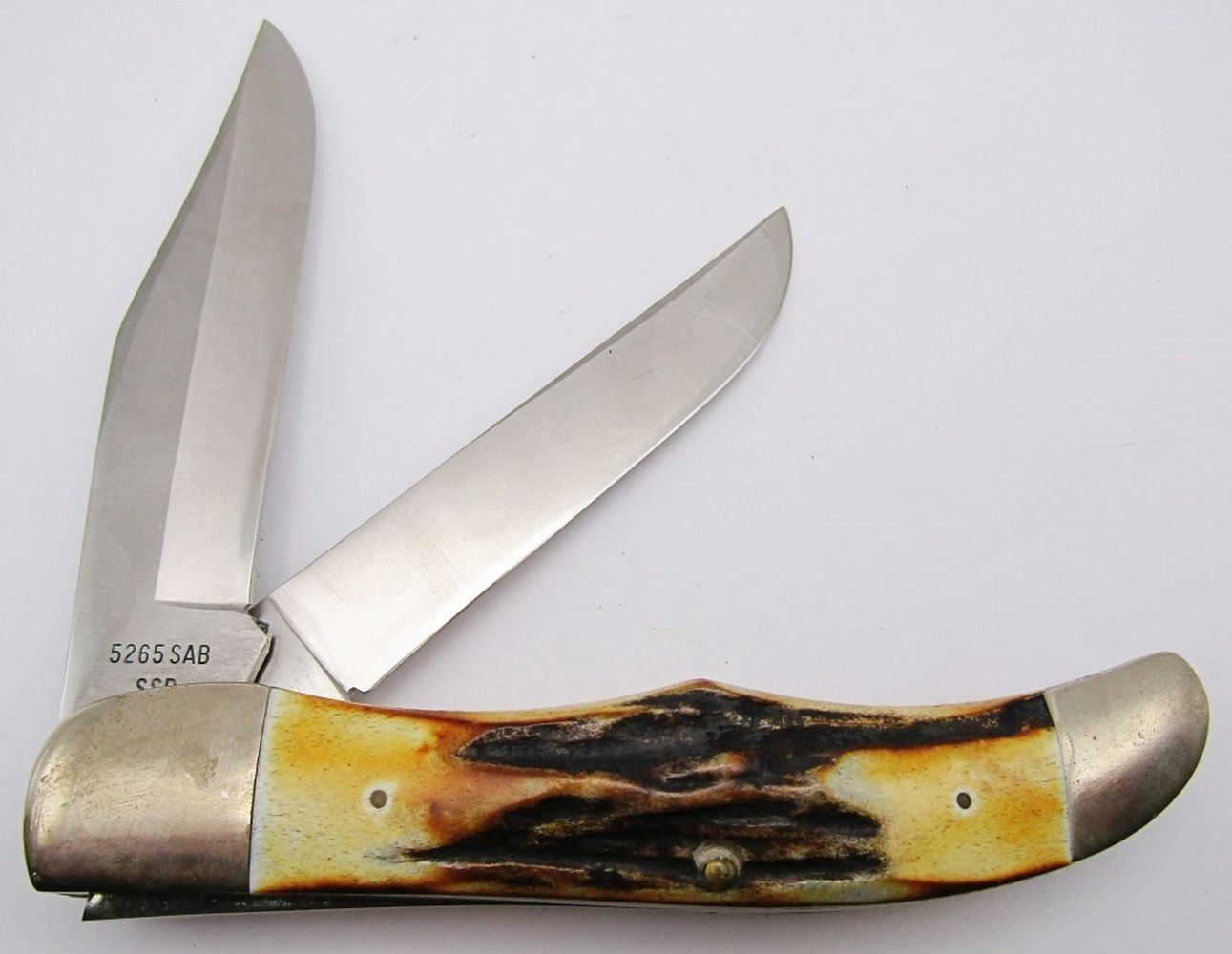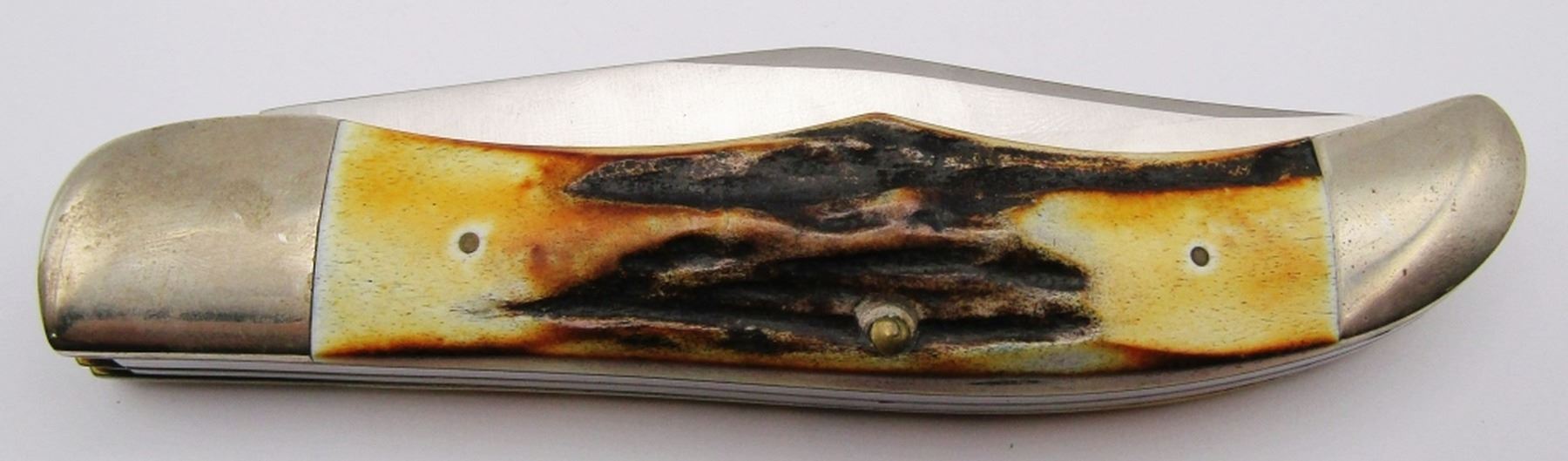2 Blade Folding Hunter Knife; Genuine Stag Handles; Near Mint/Mint Condition!