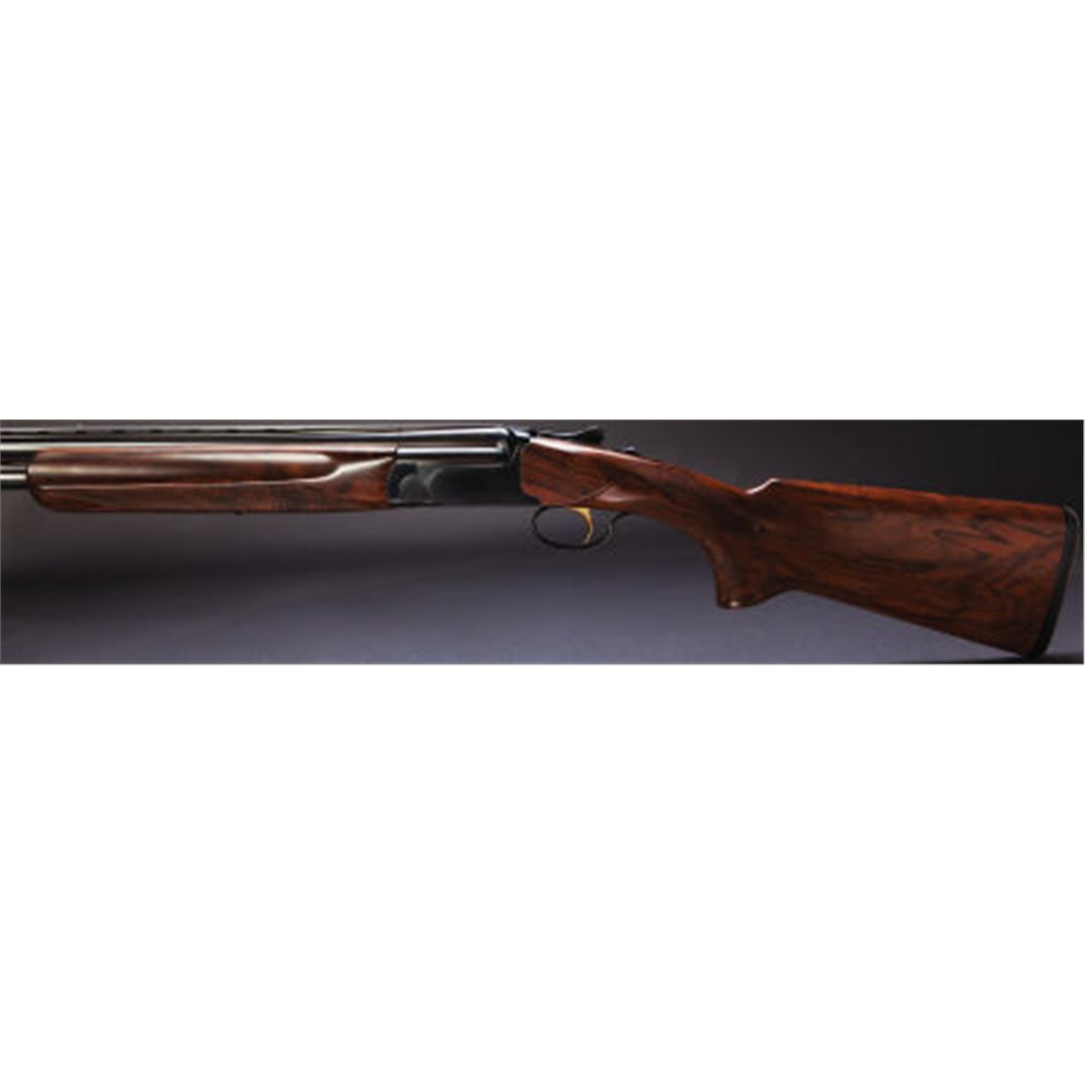 **Cased 20 Gauge Perazzi MX8-20 Over and Under Shotgun. Serial no. 91774. 20 gauge. 28 3/8-inch barrels with matted ventilated rib and ported side ribs. Double beads. Insert chokes. Blued trigger plate action with removable trigger group. Action marked: Perazzi MX8-20. Ejectors. Gold plated single non-selective trigger. Non-automatic safety. Finely checkered pistolgrip stock of highly figured walnut. Later leather faced 1/2 inch recoil pad . Finely checkered standard size fore-end with Deeley-Edge style release. Maker's hard green plastic case with green and white checkered interior. Three combination locks. Two hard plastic containers with 5 choke inserts. One hard plastic container with spare main springs, strikers and an installation tool. Screw driver. Owners manual. Faux Chamois sleeves. Data: Barrel Dimensions: Bores: 0.630/0.627 inches. Chokes: Insert. Chambers: 2 3/4 inches. Proof: Italian Magnum Nitro, 15.9, 15.9, CAM 70, BF. Stock Dimensions: Pull: 14 1/4 inches. Drop at comb: 1 1/2 inches. Drop at heel: 2 3/8 inches. Cast: None. Weight: 7 pounds, 3 ounces. Condition: Excellent, showing limited use. Barrels show 99% bluing. Excellent bright bores. Action and triggerguard show 99% bluing. Stock shows a couple of light marks and a very small nick on the top of the comb. Fore-end iron and furniture show 99% bluing. Fore-end shows a small impression at the tip. Case in excellent condition.