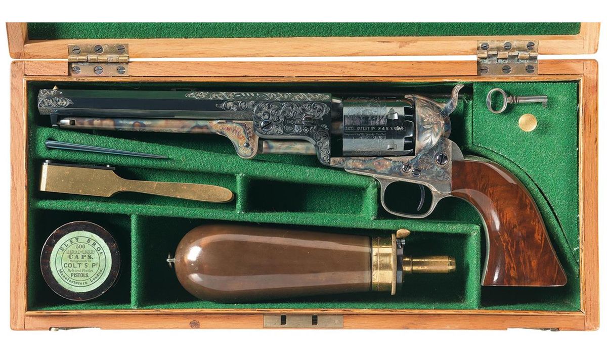 Cased Andrew Bourbon Signed and Engraved London Klay Associates Colt Model 1851 Navy Revolver with Factory Letter and Accessories