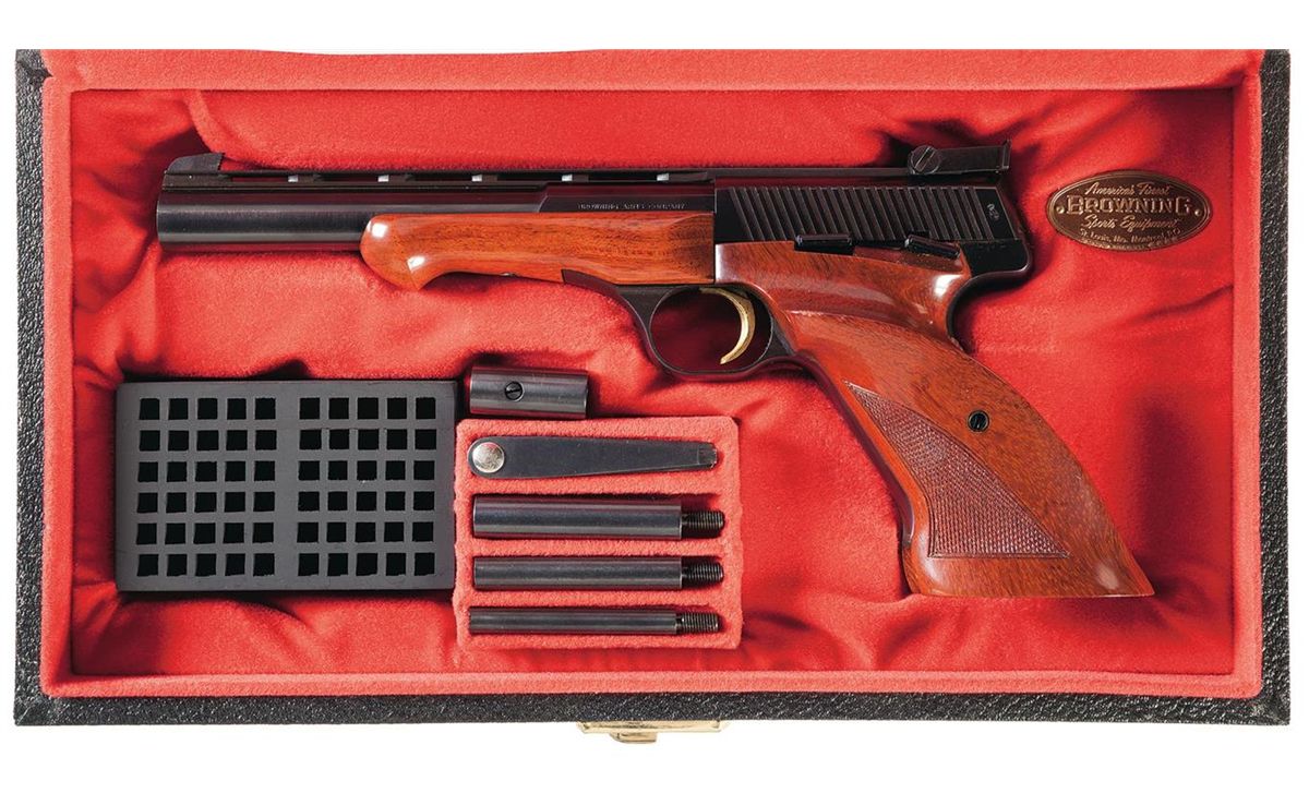 Cased Belgian Browning Medalist Semi-Automatic Target Pistol with Weight Set