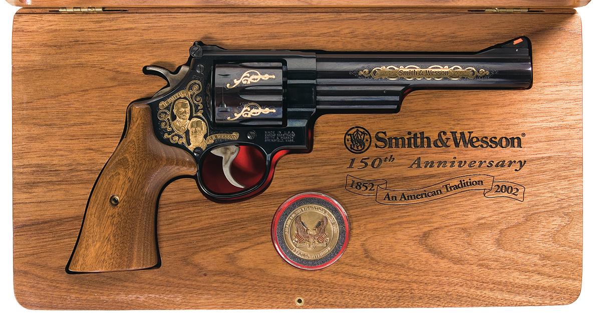 Standard anniversary markings and features, with standard anniversary case and factory blue plastic case numbered to gun.