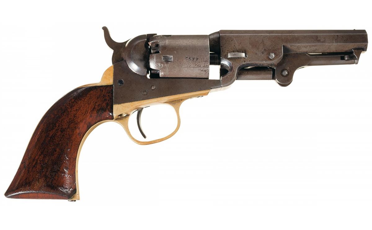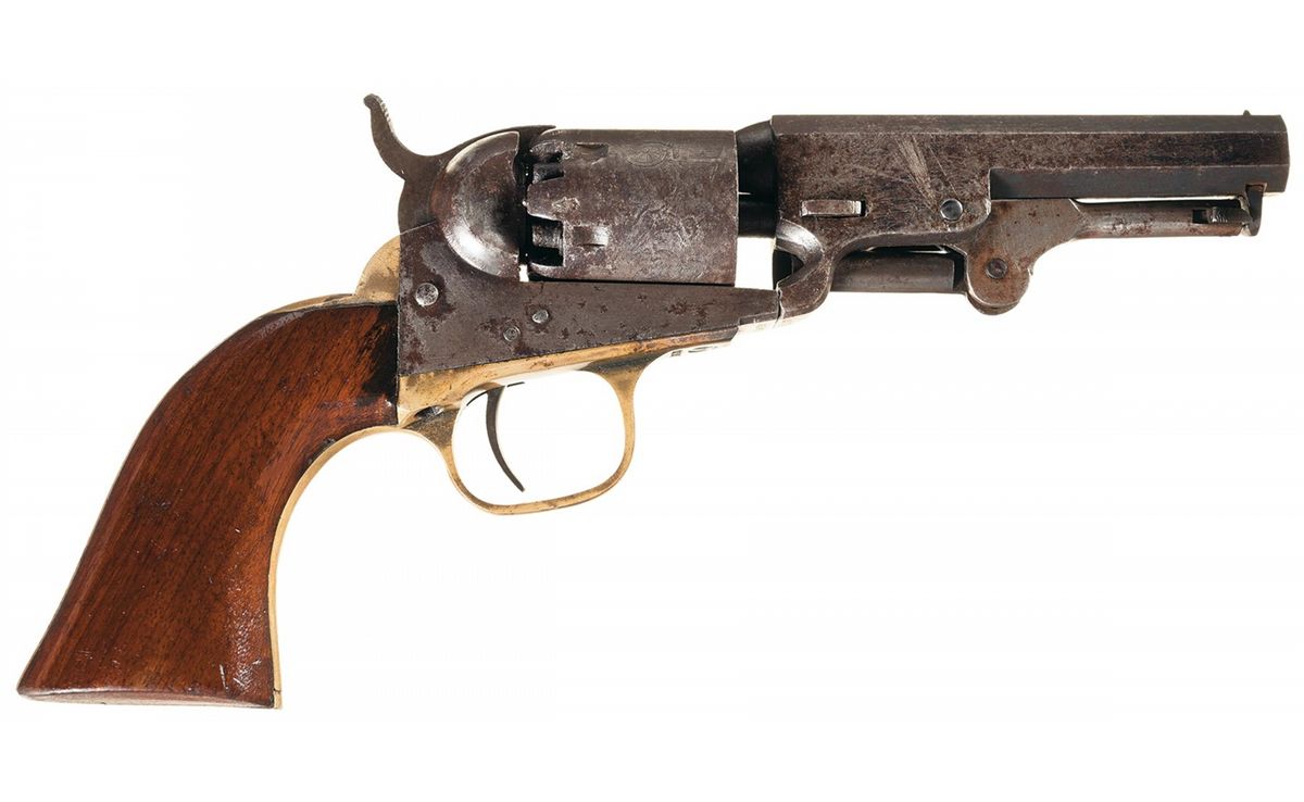 Cased Lap Desk of Two English Proofed Post Civil War Colt Model 1849 Percussion Pocket Revolvers Inscribed to Confederate General and U.S. Senator Randall Lee Gibson with Accessories and Presidential Pardon -A) Colt Model 1849 Revolver