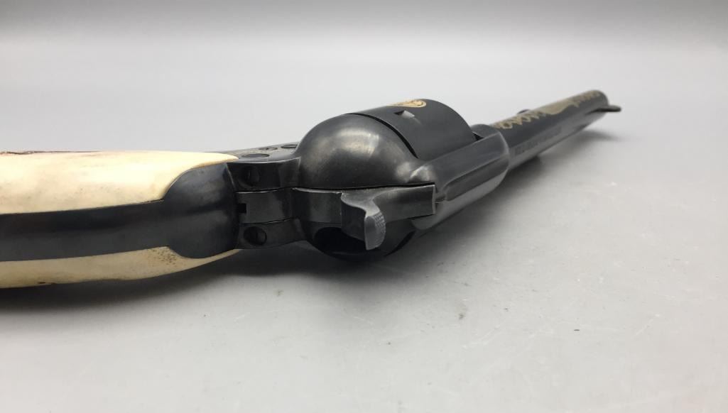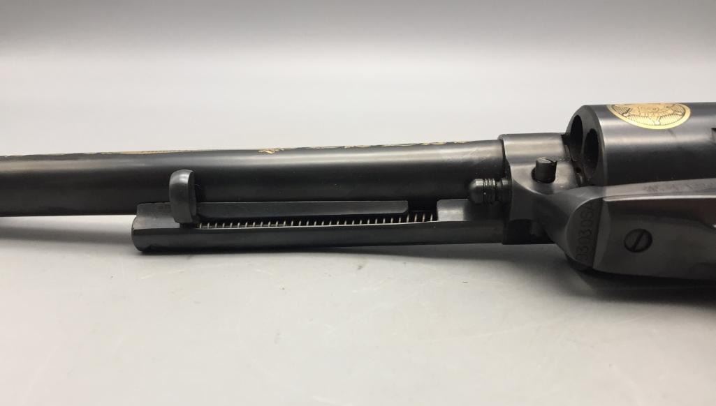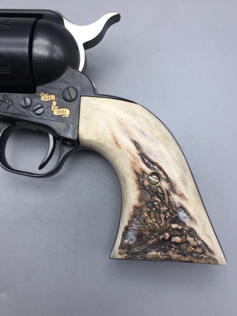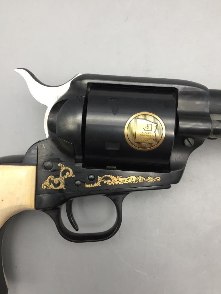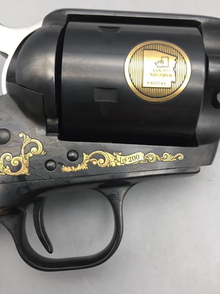 For your consideration we offer for sale this commemorative Maricopa County Sheriff’s Colt, single action army revolver in a .45 caliber with a gorgeous presentation wooden case and badge. It comes with its original boxes. The packaging shows use, as would be expected, but the firearm is like new. Maker: Colt. Serial No. 93030SA. Size: Barrel measures 7.5 inches. Age: Circa 1981. Please look closely at the pictures - they are an important part of our description. Shipping: There will be a $5 handling / packaging fee for shipping this lot. The actual cost of postage will be added on top of that. *****This firearm requires an FFL Transfer*****