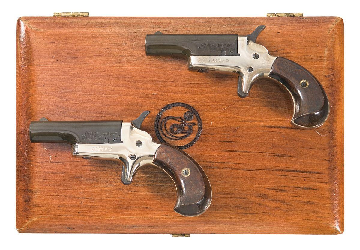 A) Manufactured in 1960. Standard markings and features. Complete with wooden case branded "COLT" on the lid.