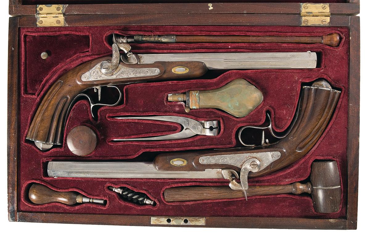 B) Engraved Percussion Target Pistol in Case