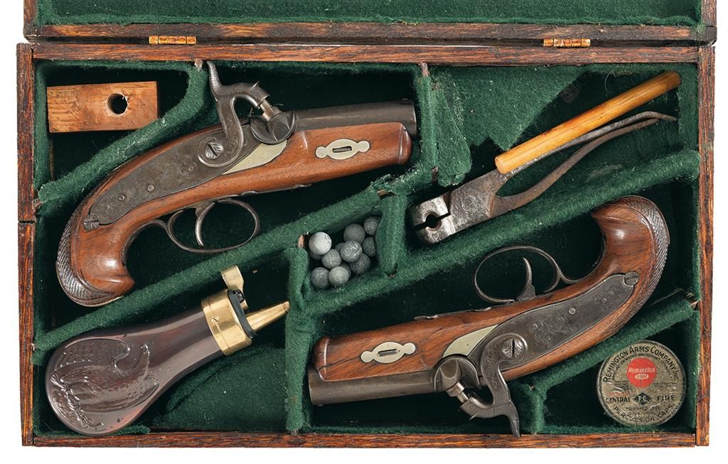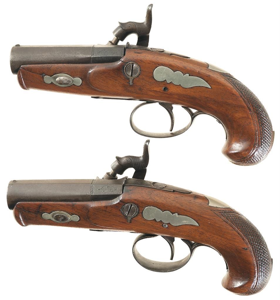 Cased Pair of Unmarked Matching Percussion Derringers with Accessories -A) Percussion Derringer